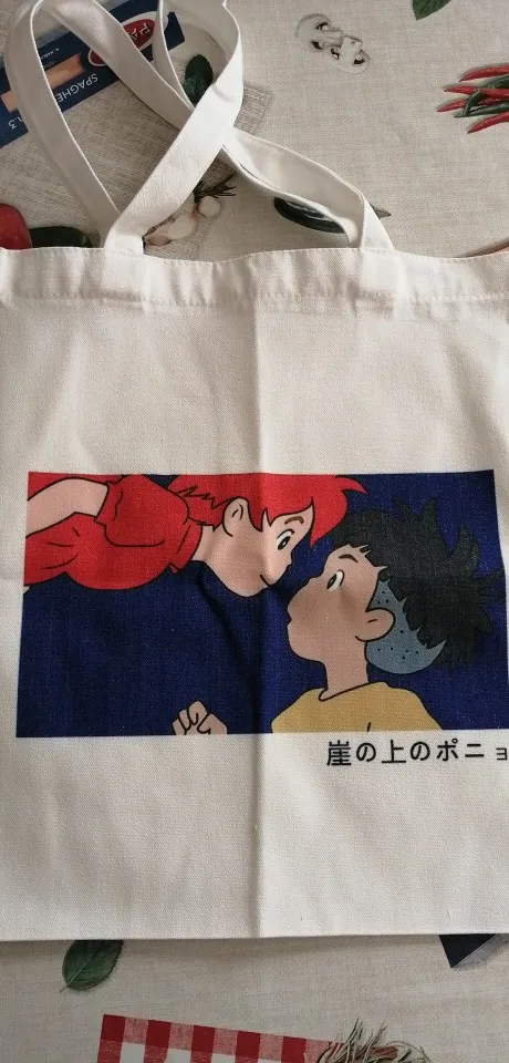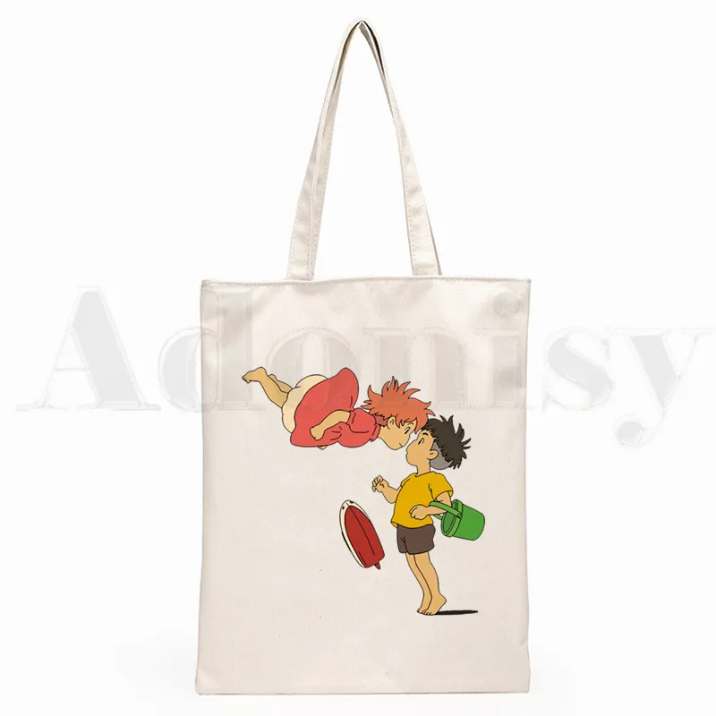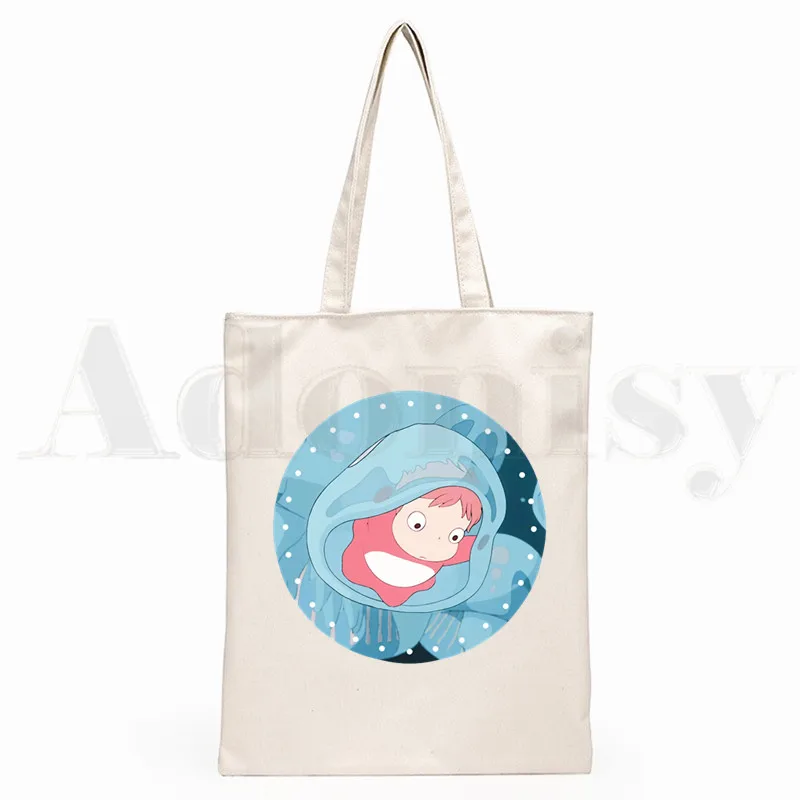 Ponyo на скале у моря студия Ghibli Хаяо Миядзаки мультфильм Печать Сумки для покупок Девушки Мода Повседневная Pacakge сумка