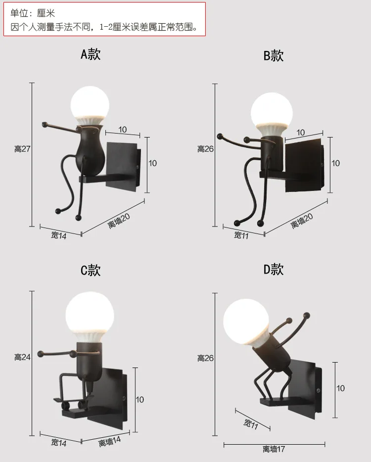 Настенная железная лампа E27, декоративный мультяшный настенный све...
