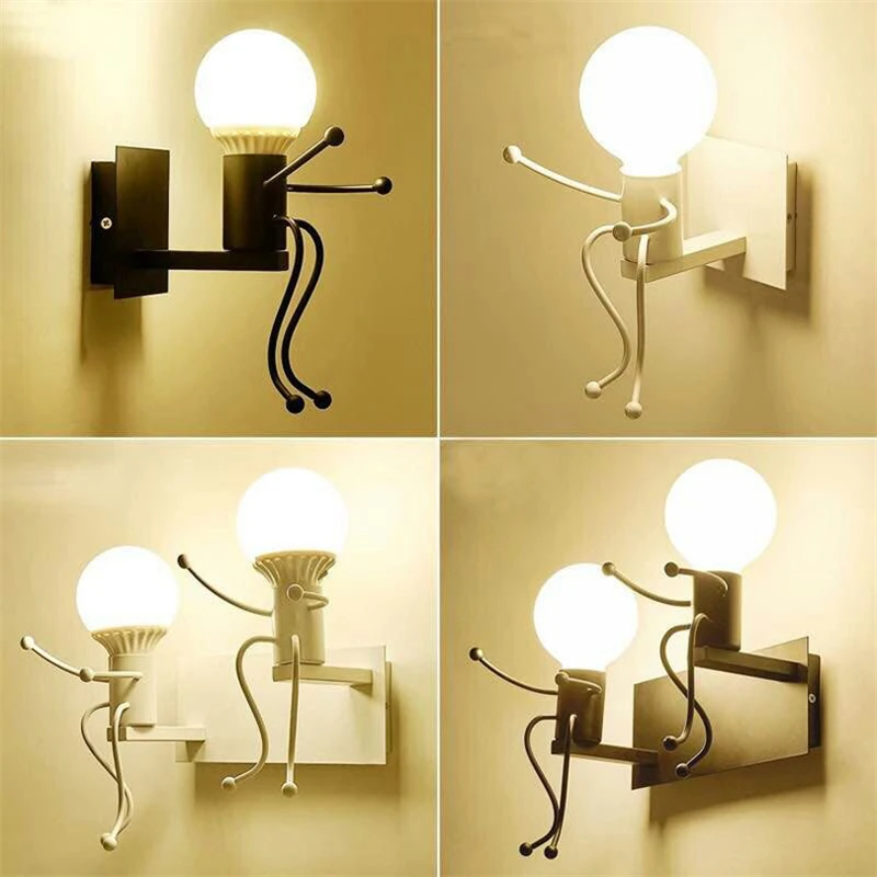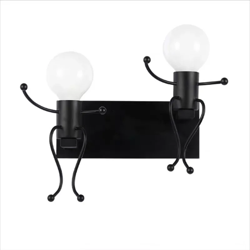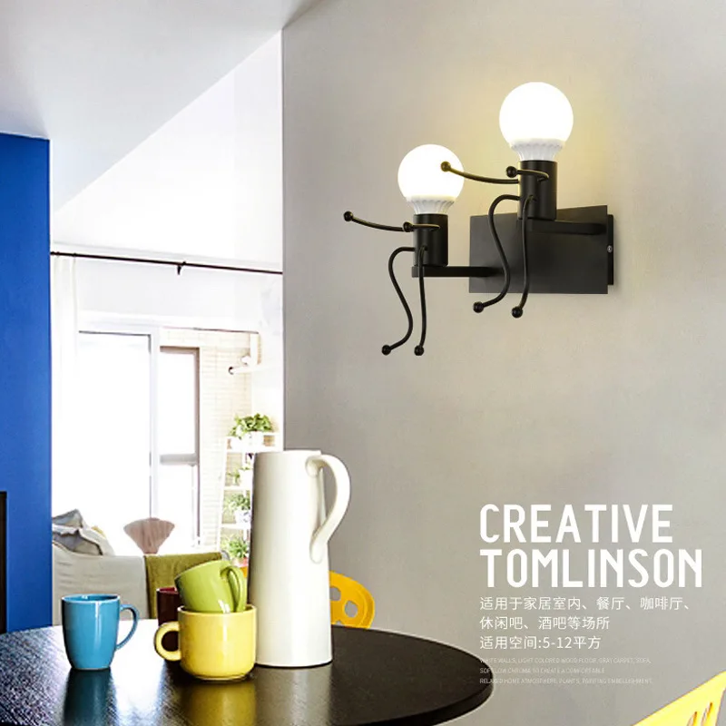 Современная железная светодиодная настенная лампа в американском стиле, креативный металлический светильник на стену с мультяшным роботом для спальни, детской комнаты