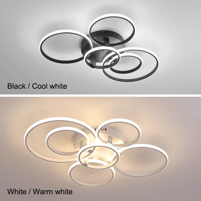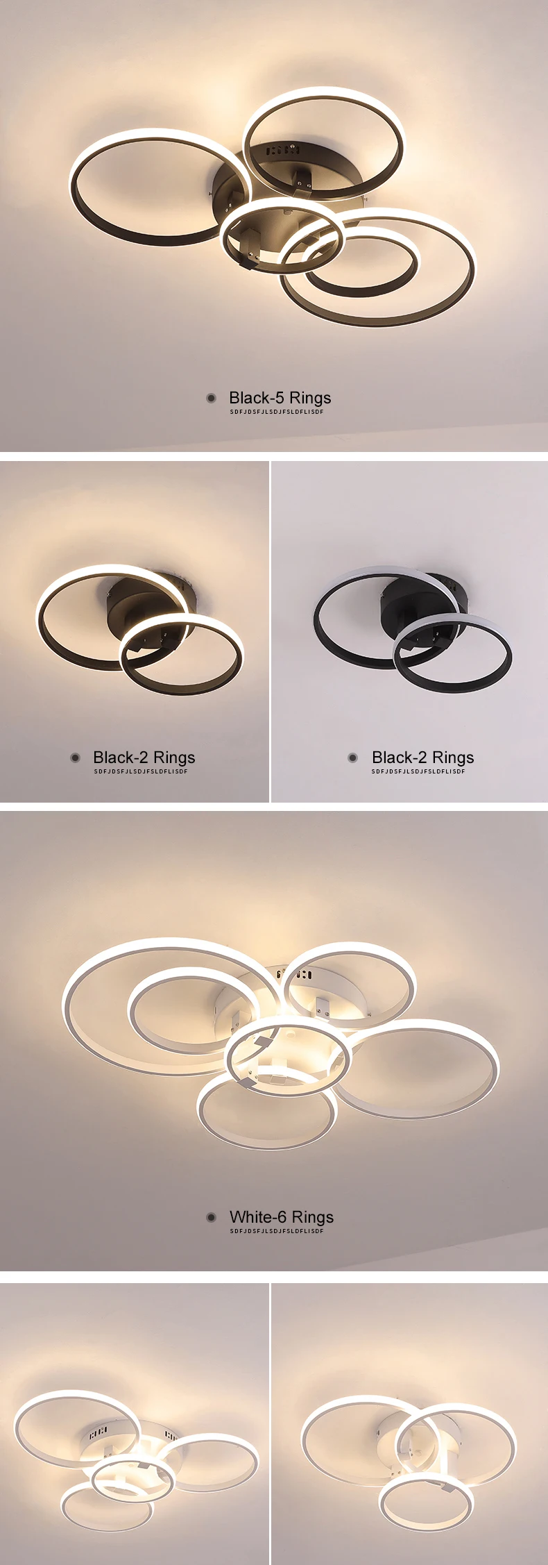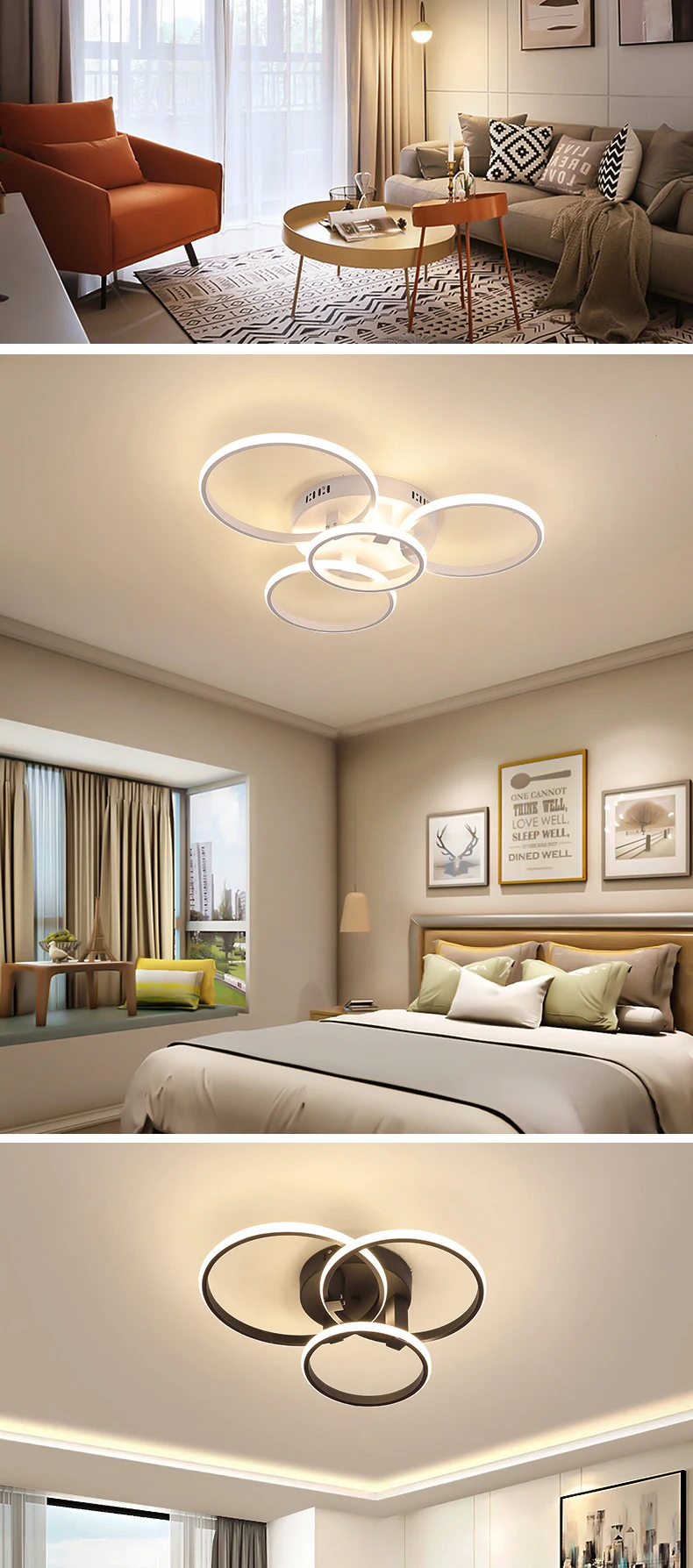 Светодиодные потолочные светильники, 4 кольца, 6 колец, комнатное освещение для гостиной, спальни, столовой