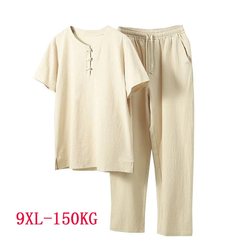 Рубашка Мужская льняная с брюками, размера плюс обхват груди 155 см, большие размеры 5XL 6XL 7XL 8XL 9XL, 5 цветов, на лето
