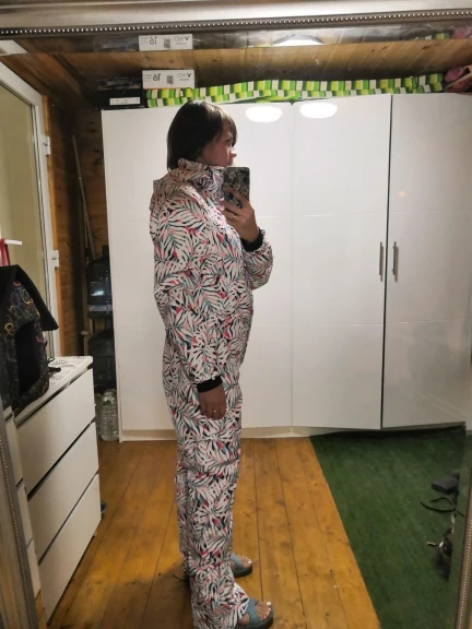 Костюм за свои деньги очень даже хорош. На рост/вес 170/73 (я спортивного телосложения) размер L сел почти идеально (на рукавах отверстия для больших пальцев жмут.. Пришлось распороть немного) ну и руки вверх задирать сложновато. Комбез не супер плотный. Я откатала в шерегеше в - 25 с хорошей термой и флисом - НЕ замёрзла, поэтому комбез за 8.5тыс очень даже! Влагу отводит средне, телефон в нагрудном кармане мокрый. Швы нигде не разошлись, молнии живы. Вся каталка только в нем, второй костюм не доставала. Комбез не разбирается на куртку и штаны (хотя на фото описании продавца это заявлено)