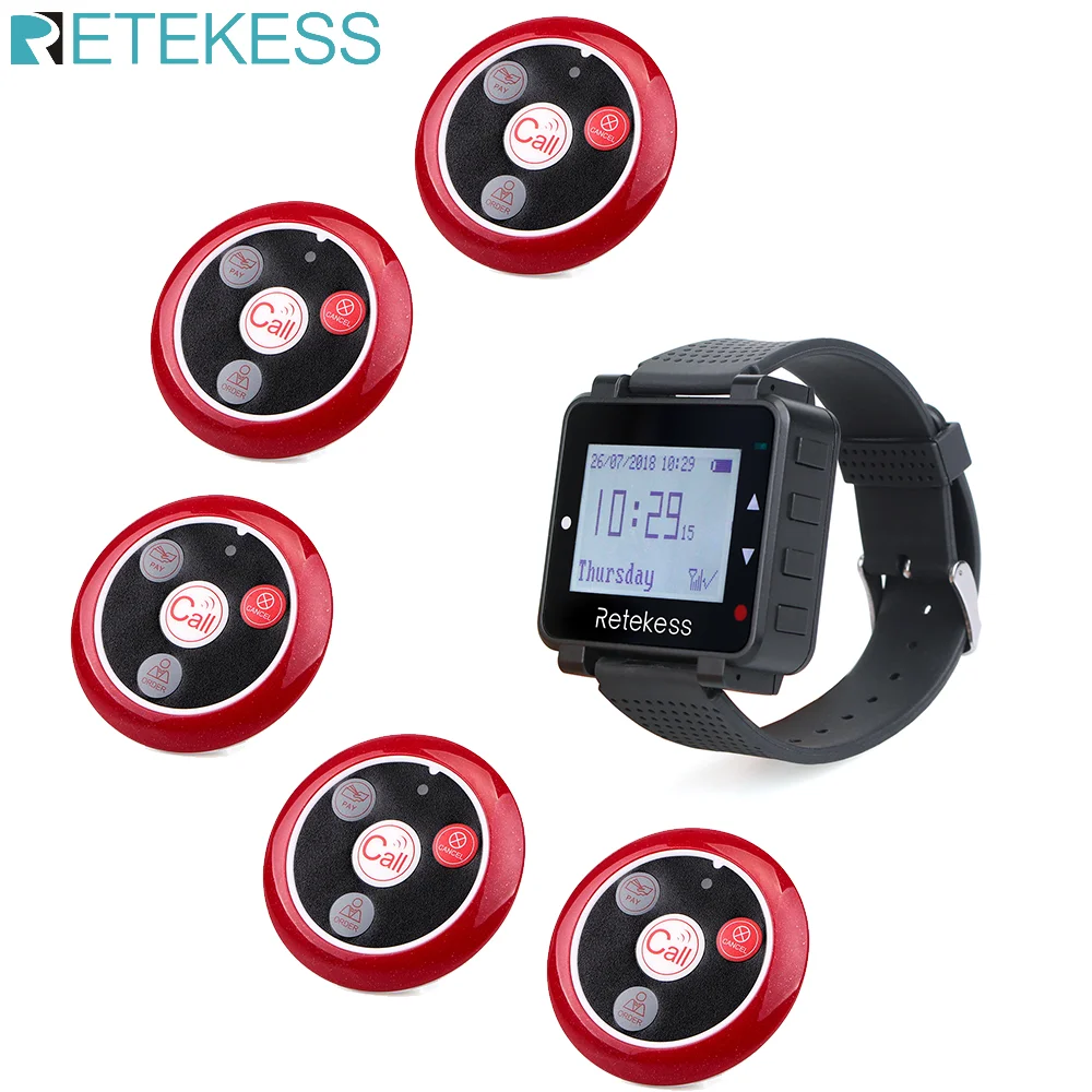 Беспроводная система вызова официанта RETEKESS для ресторана 1 черный приемник часов + 5 кнопок вызова служба поддержки клиентов беспроводные пейджеры