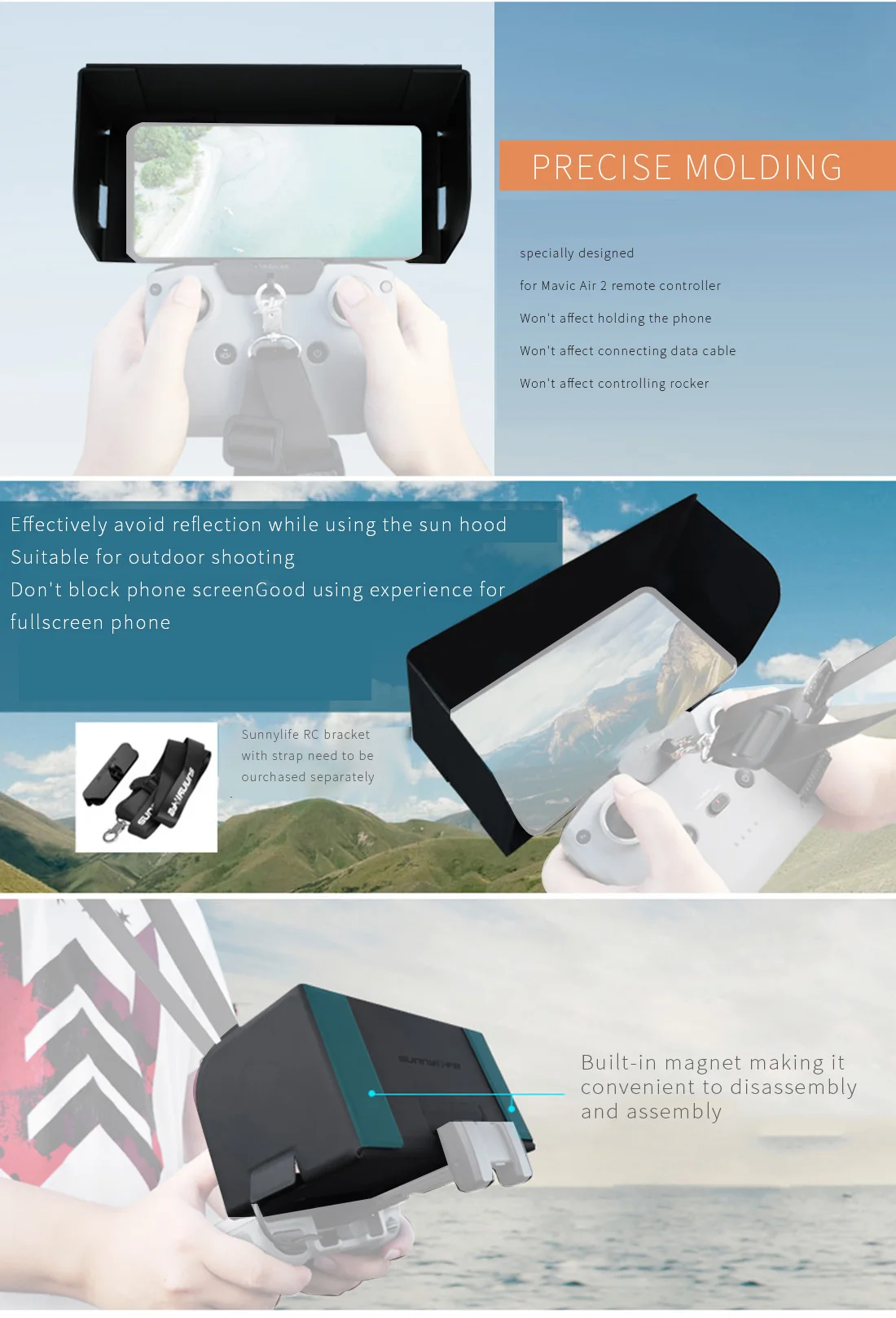 Sunnylife мобильный телефон Солнцезащитная Крышка Складная магнитная Солнцезащитная Крышка для Mavic Air 2 Пульт дистанционного управления