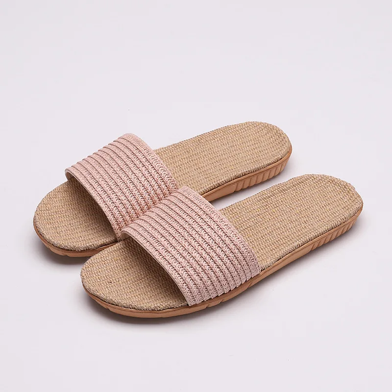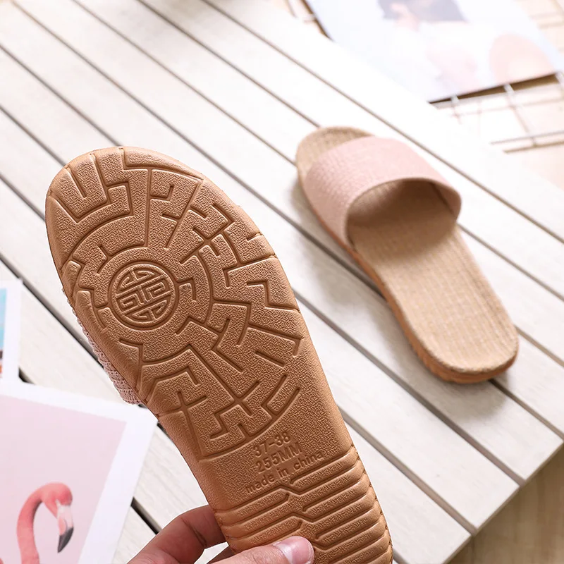 Женская обувь; Льняные шлепанцы; Летние домашние шлепанцы однотонные Нескользящие домашние тапочки; Женская Тапочки льняные; Коллекция 2020 года