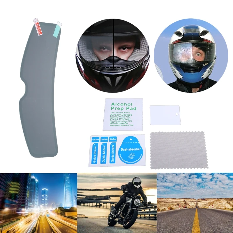 Особенности:Изготовлен из пленочный ПЭТ материал, тип чистого и прочного термопластика, который идеально подходит для изготовления пленок с козырьком.Защитите шлем от тумана с помощью этой пленки и получите более четкое видение, когда вы проедете через любую плохую погоду.Новый дизайн формы облегчает нанесение противотуманной пленки на объектив шлема.Противотуманная пленка размещена внутри, что делает видимость больше не блокируется туманом.Вам нужно это, чтобы уменьшить вероятность автомобильных аварий, вызванных длительным вождением.Универсальный для шлемов на полный/половинный/открытый мотоцикл.(Пожалуйста, обратите внимание: не подходит для полусферического лобового стекла.)Идеально подходит для мотоциклистов, байкеров и велосипедистов.Только комплект непромокаемой пленки, другие демонстрационные аксессуары на картинке не включены. Шаги установки:1. Очистите Объектив шлема с помощью инструмента и Оторвите защитный слой.2. Поместите противотуманную пленку внутри или снаружи шлема (внутренний Анти-туман, внешний Анти-дождь)3. Аккуратно прижмите противотуманную пленку к объективу от середины до края.4. Завершено. Характеристики:Материал: ПЭТРазмер: app.23x7cm/9.06x2.76inЦвет: прозрачныйПодходит для: всех шлемовКоличество: 1 комплект Примечание:Возможны отклонения в 0-1 см вследствие измерений вручную. Пожалуйста, убедитесь, что вы не возражаете, прежде чем сделать ставку.Из-за разницы между различными мониторами изображение может не отражать фактический цвет изделия. Спасибо! Посылка включает в себя:1 x непромокаемая пленка1 x аксессуары для защиты экрана