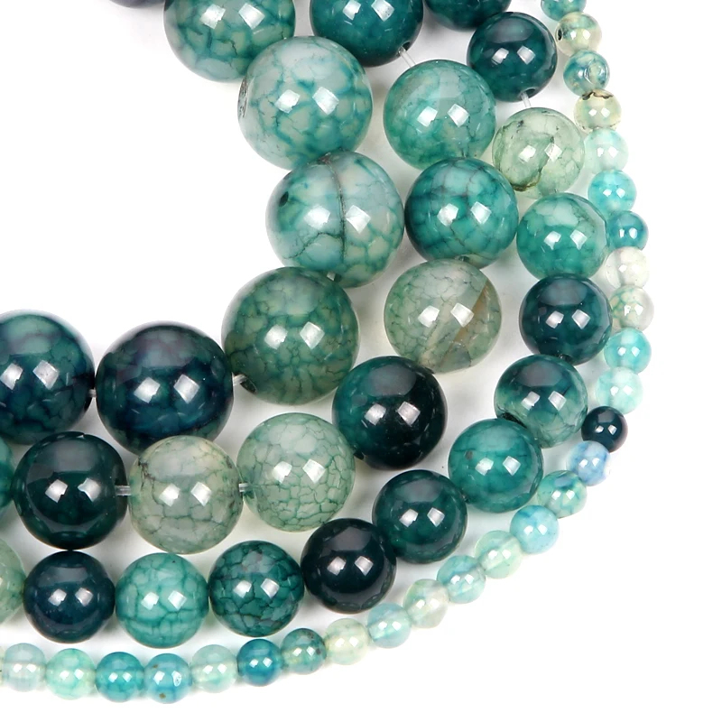 Бусины из натурального агата, 4-12 мм, синие и зеленые