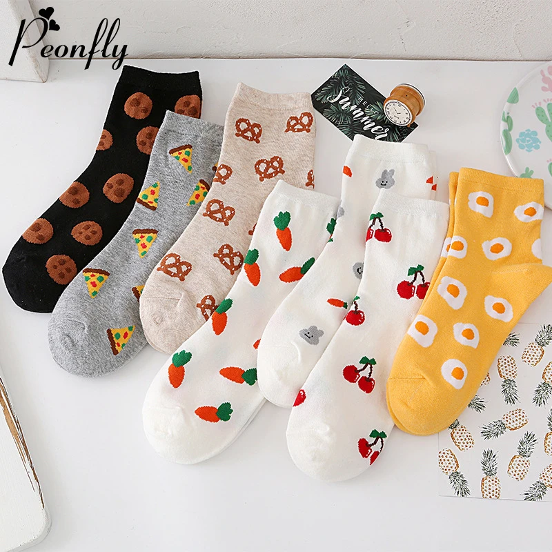 PEONFLY милые модные мягкие Новинка Хлопковые женские Носки с рисунком кролик морковь пиццы красочные счастье кавай смешные носки на подарок для девочки