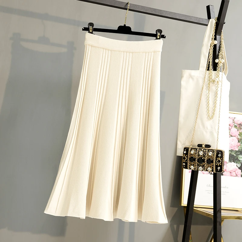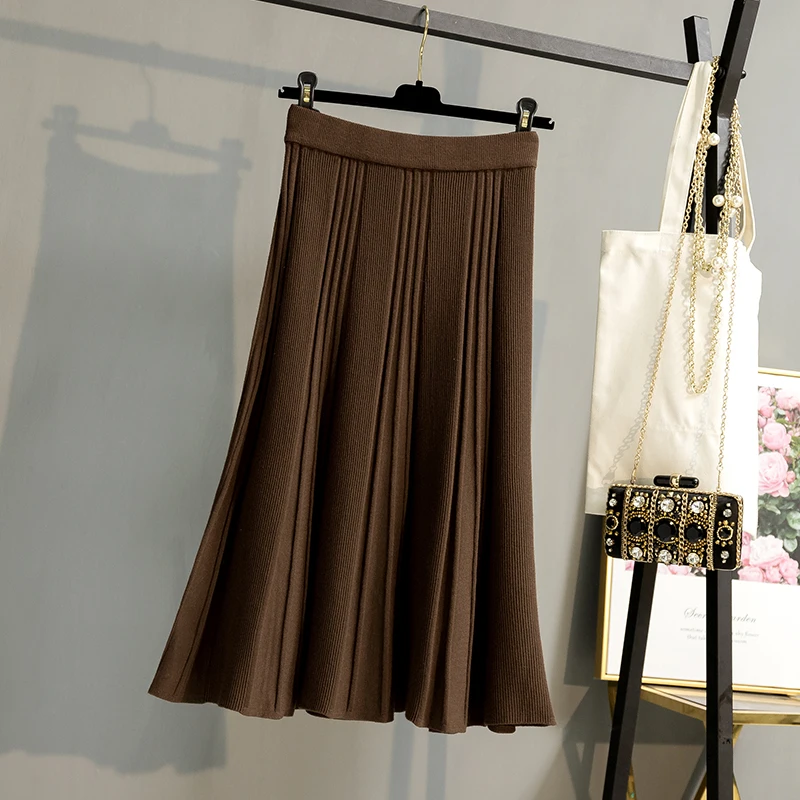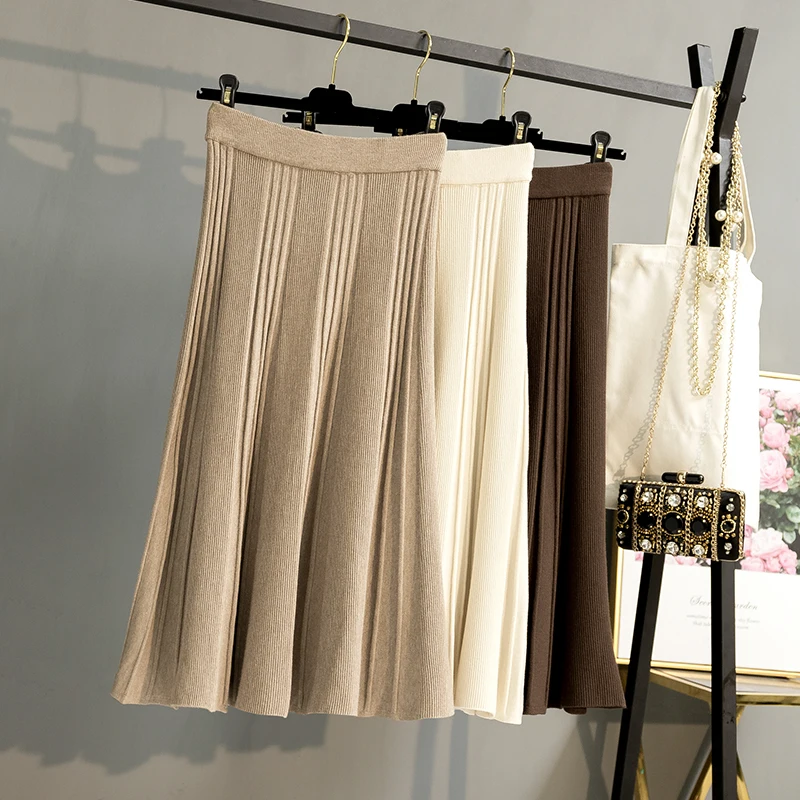 Женская Длинная вязаная юбка-макси BYGOUBY, плотная теплая трикотажная юбка с драпировкой, трапециевидная плиссированная юбка с высокой талией, элегантный свитер для осени и зимы
