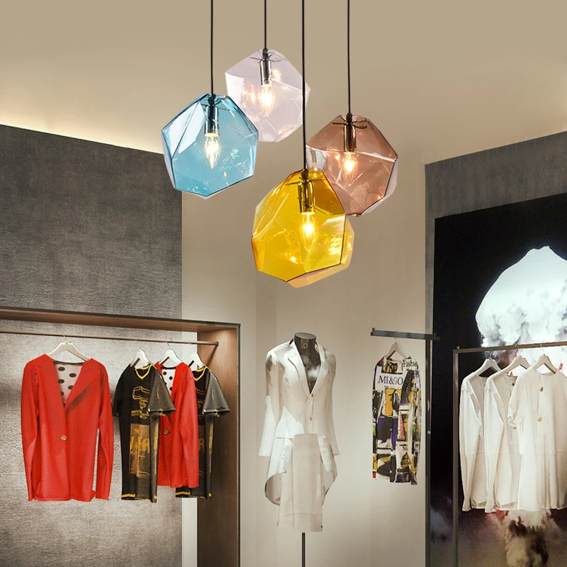 Подвесной светильник в скандинавском цветной Кристальный стеклянный, Современная креативная лампа для ресторана, гостиной, бара, декоративные подвесные лампы с одной головкой