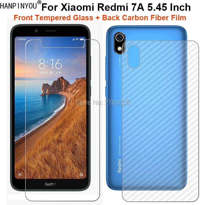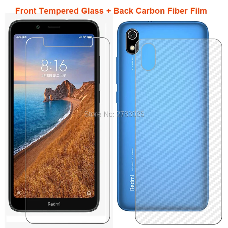 Для Xiaomi Redmi 7A 5,45 "1 комплект = мягкая задняя пленка из углеродного волокна + ультратонкое прозрачное закаленное стекло для переднего экрана