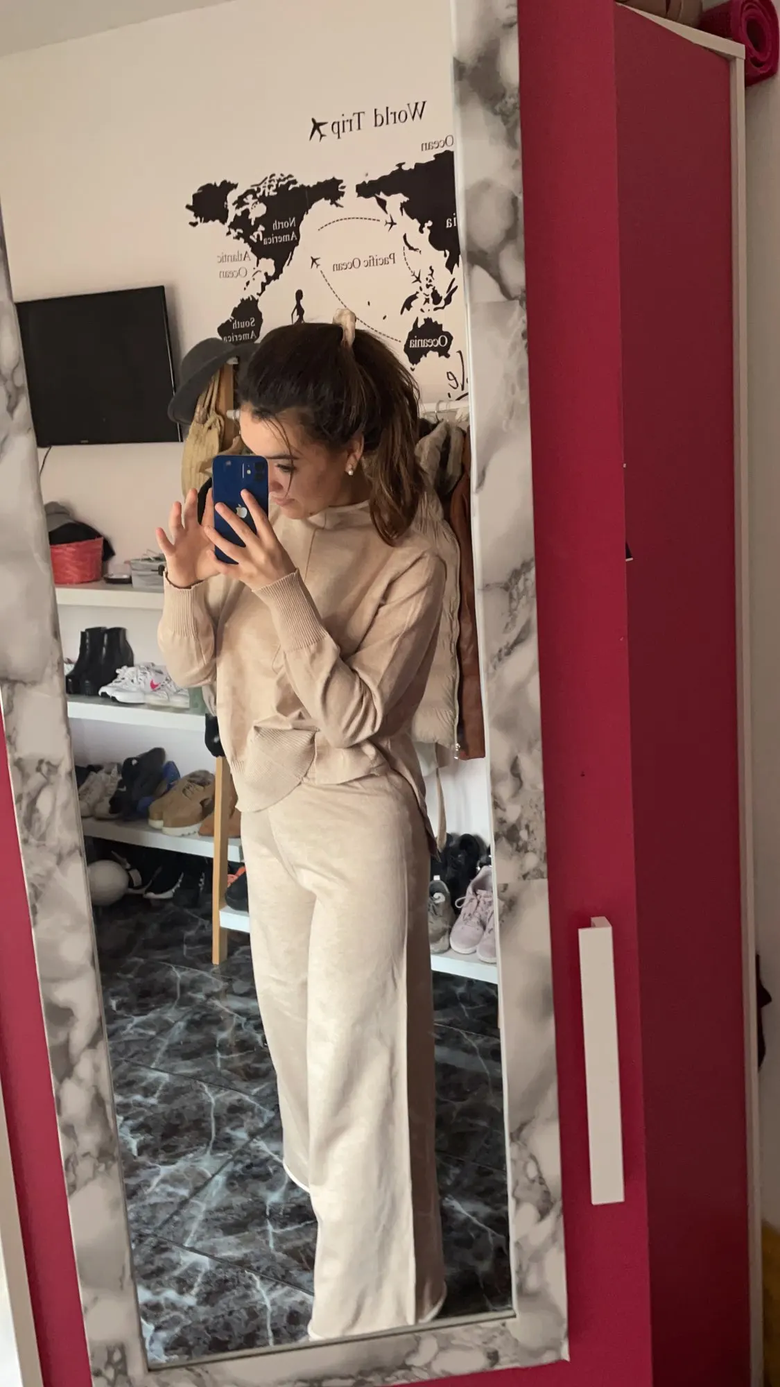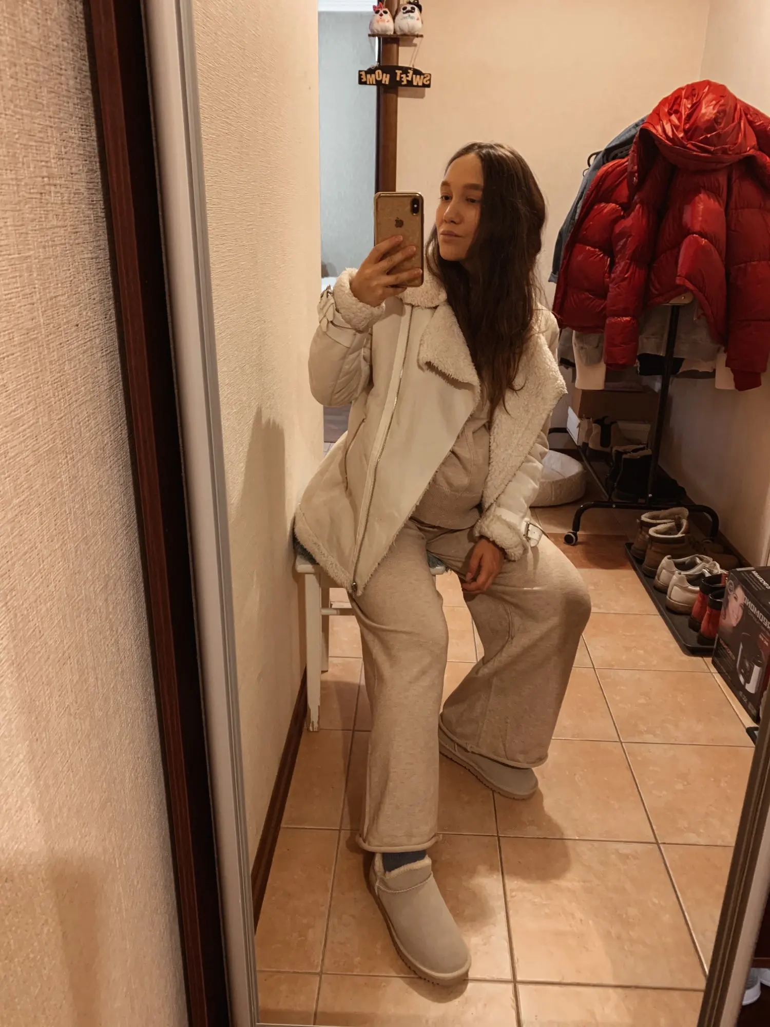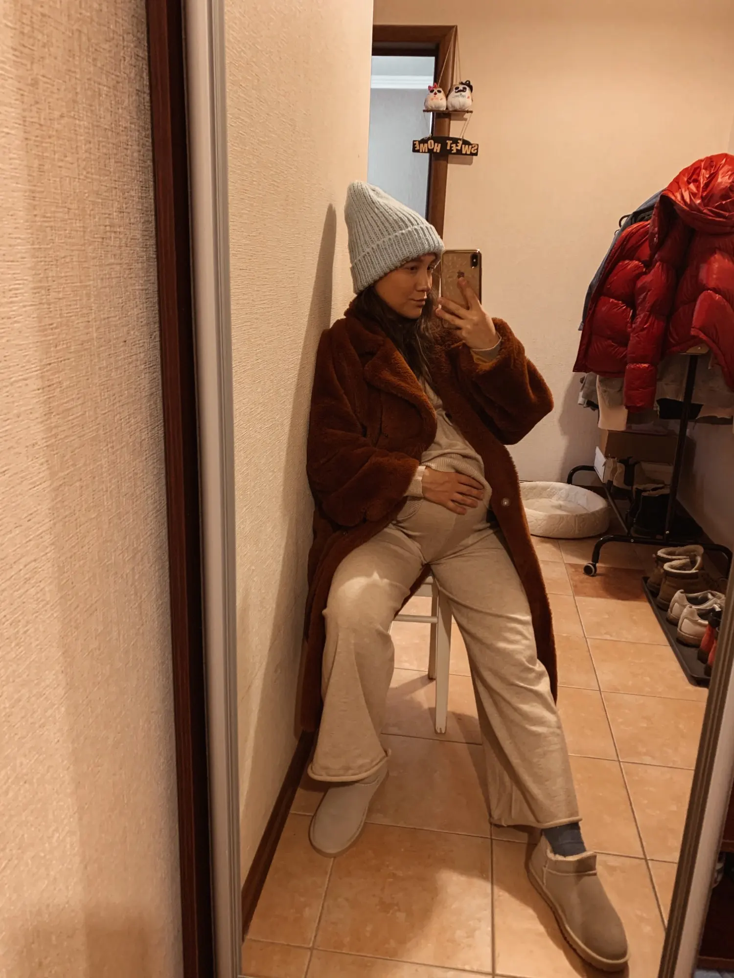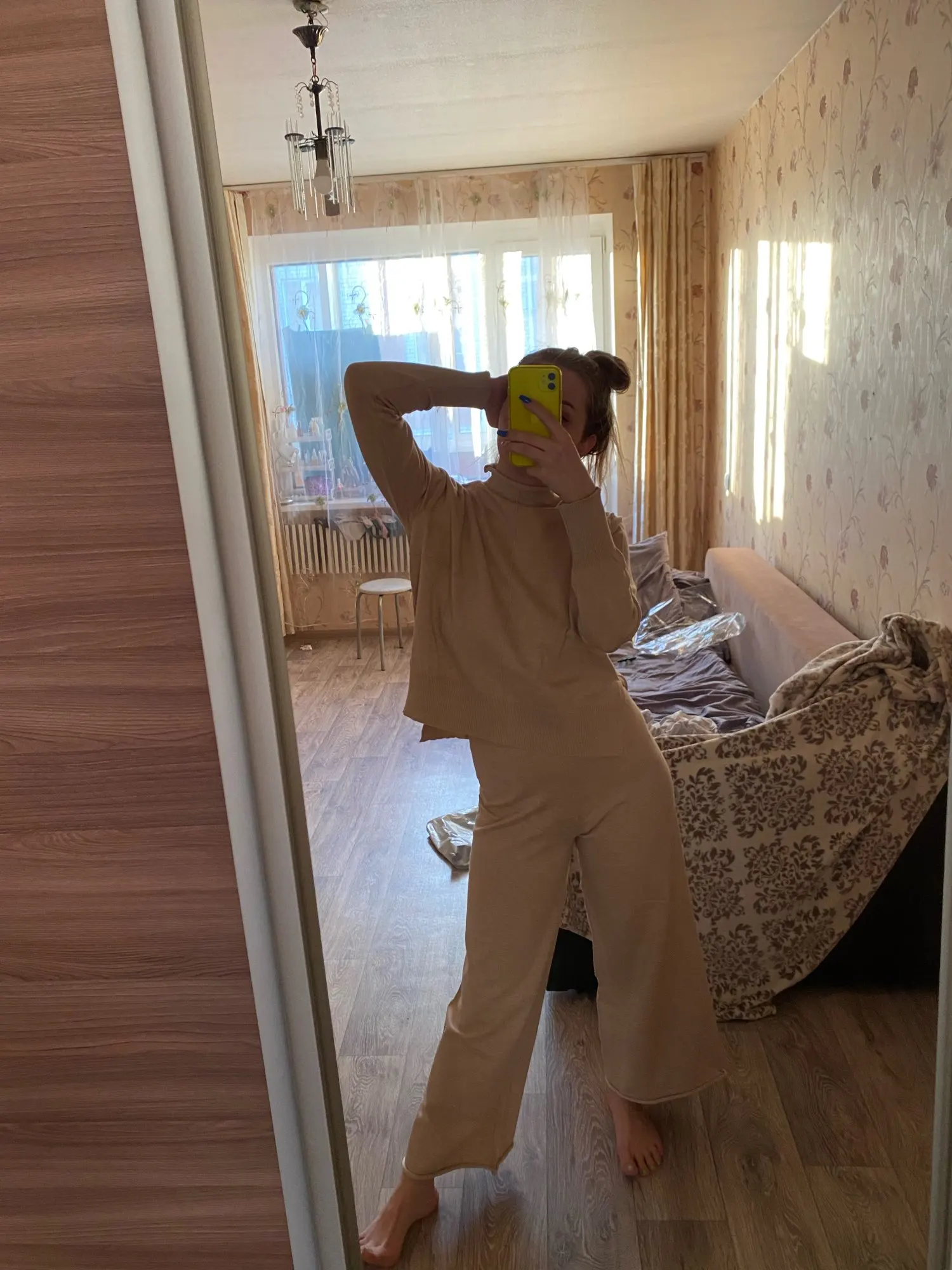 Заказ шёл около 10 дней, забирала в ближайшей «пятёрочке». Очень довольна качеством костюма — он действительно тёплый, приятный на ощупь, уютный, выполнен из плотной ткани. Брала костюм для выписки из роддома, специально взяла размер М, чтобы после родов сидел как оверсайз, хотя и сейчас он хорошо сидит, Единственное только, что живот натягивает свитер, хотя все прикрывает (8 месяц беременности). Мой рост 153 см, вес в беременность 55-56