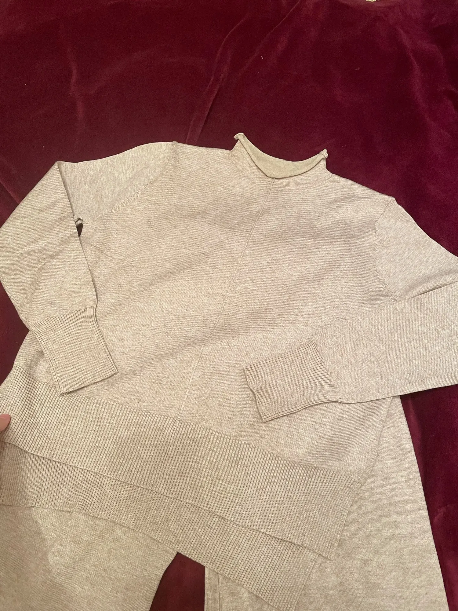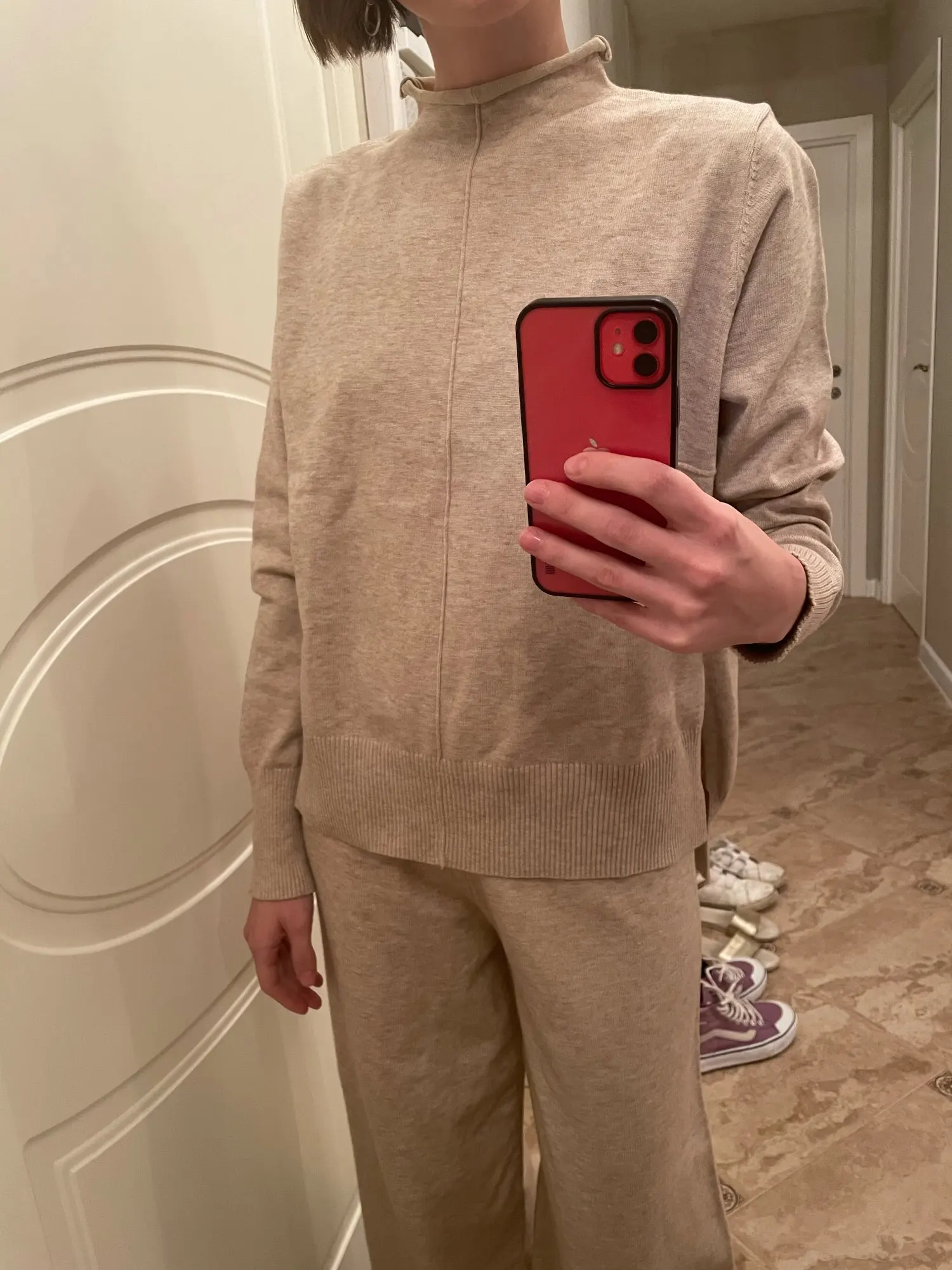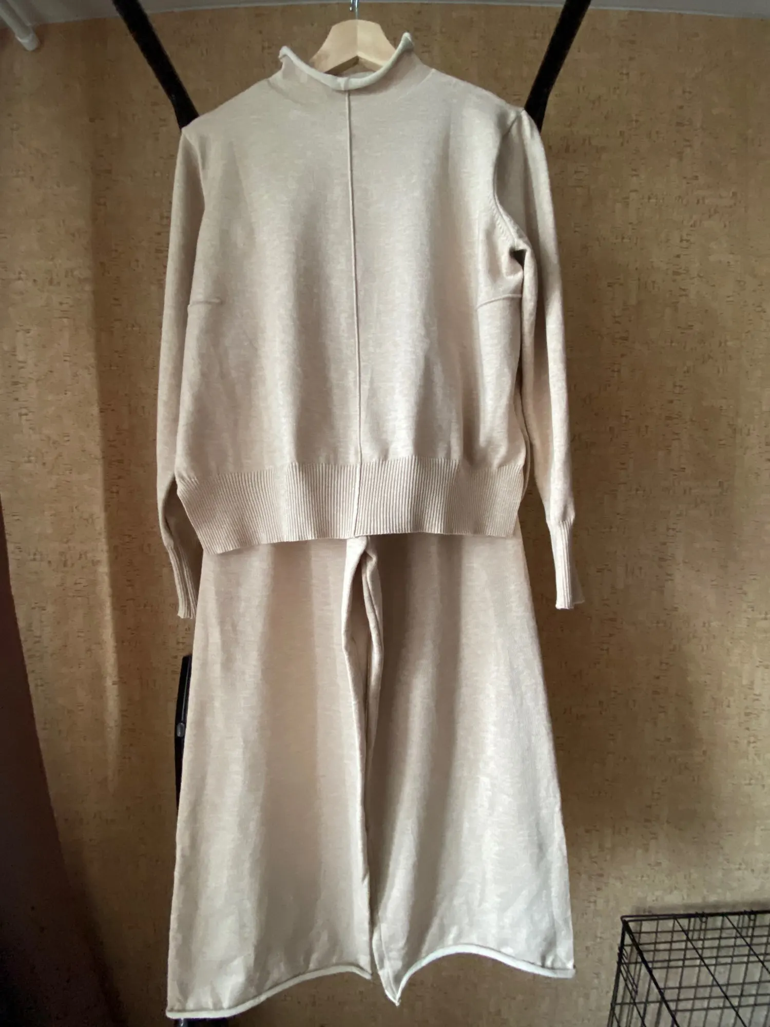Удобный приятный вязаный костюм. Ткань плотная и мягкая.