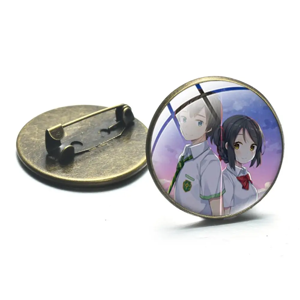 Милая аниме Кими но на ва Броши ваше имя японский мультфильм искусство фото стекло кабошон воротник булавка пуговица шляпа сумка Значки для косплея