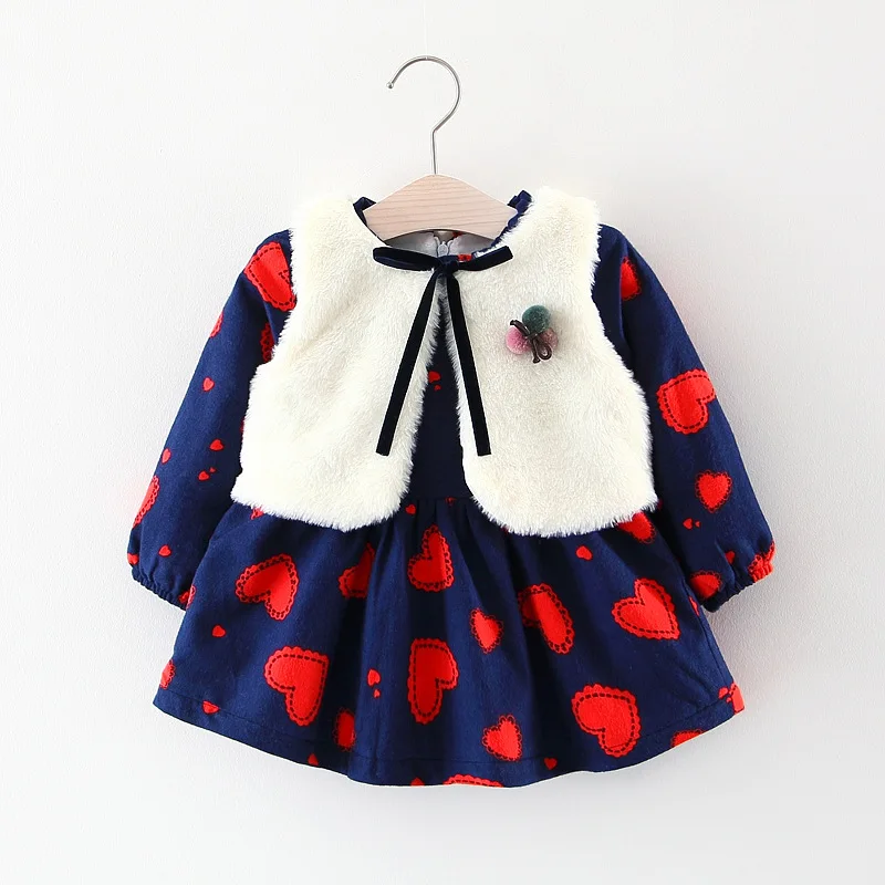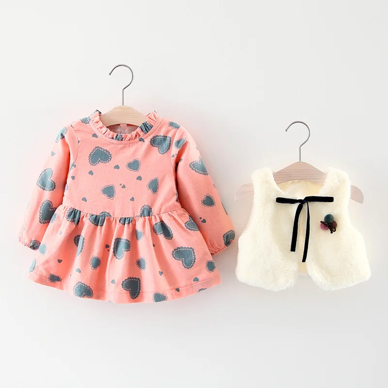 Жилет накидка + платье для девочек комплект детской одежды из 2 предметов, Детские платья для девочек, осенне-зимнее платье утепленное праздничное платье для малышей 1-2-3 лет