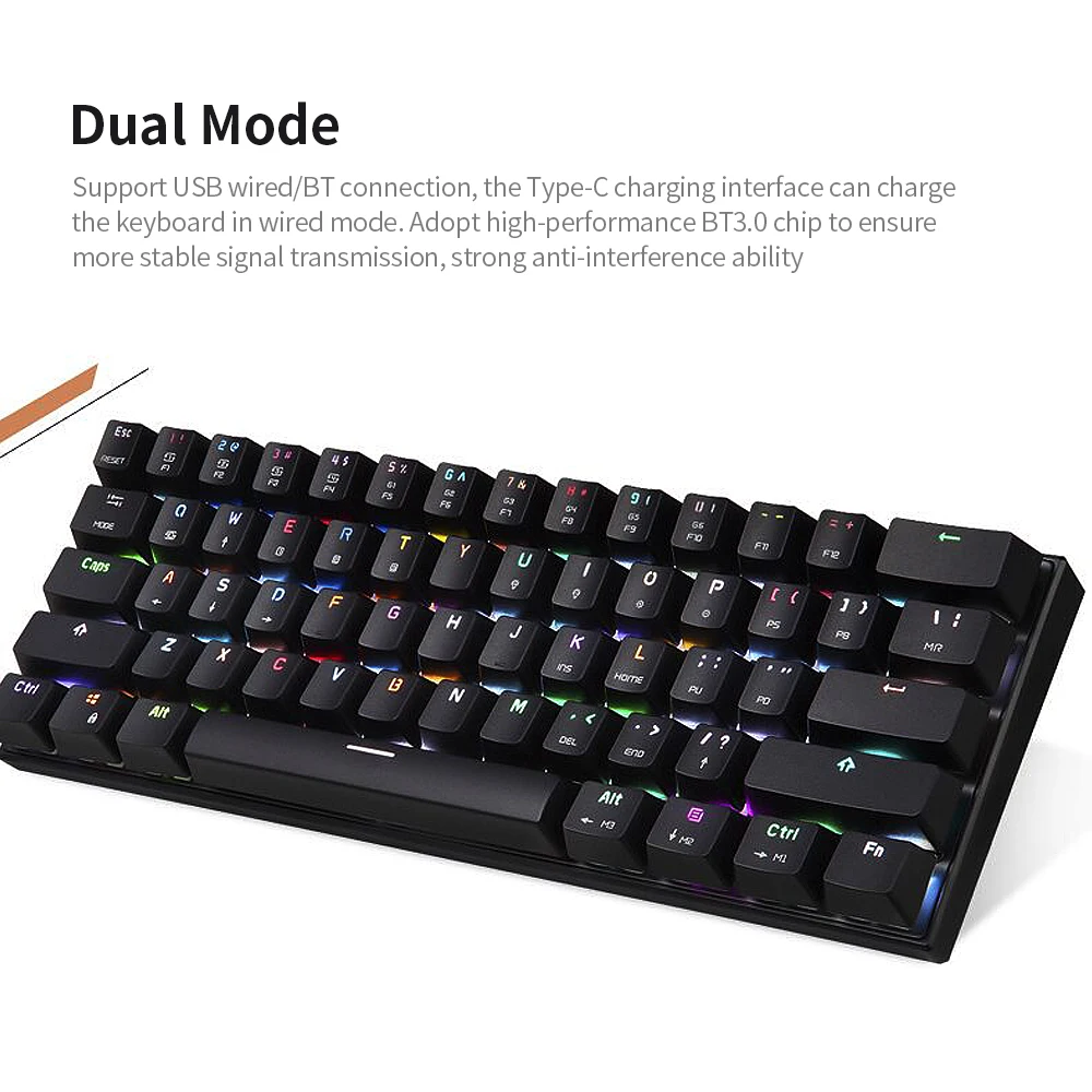 USB Проводная BT Двухрежимная игровая клавиатура Motospeed CK62 61 клавиши RGB механическая клавиатура с переключателем OUTEMU