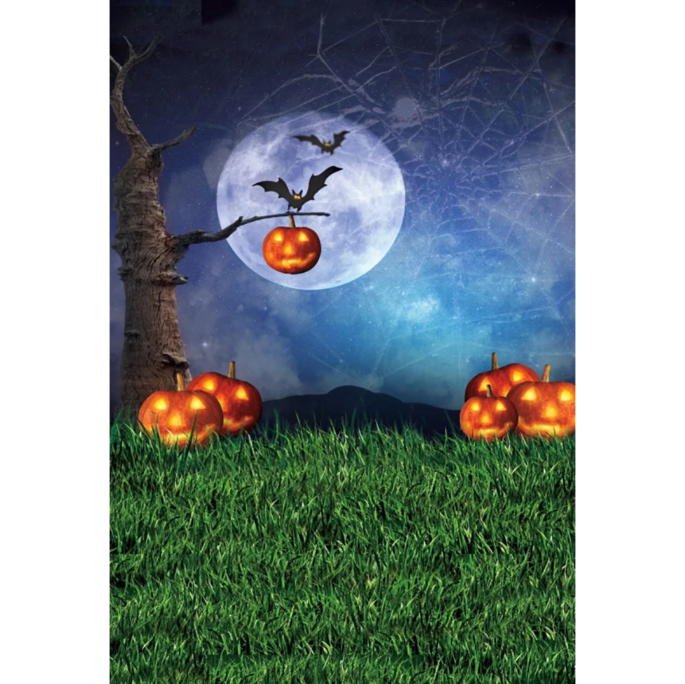 Виниловый фон для фотосъемки на Хэллоуин Тыква фонарь Луна зеленая луга