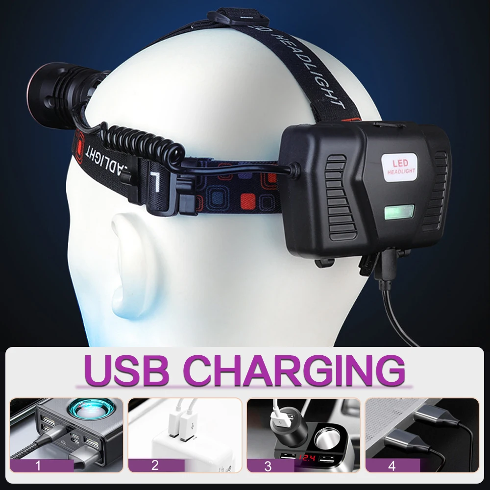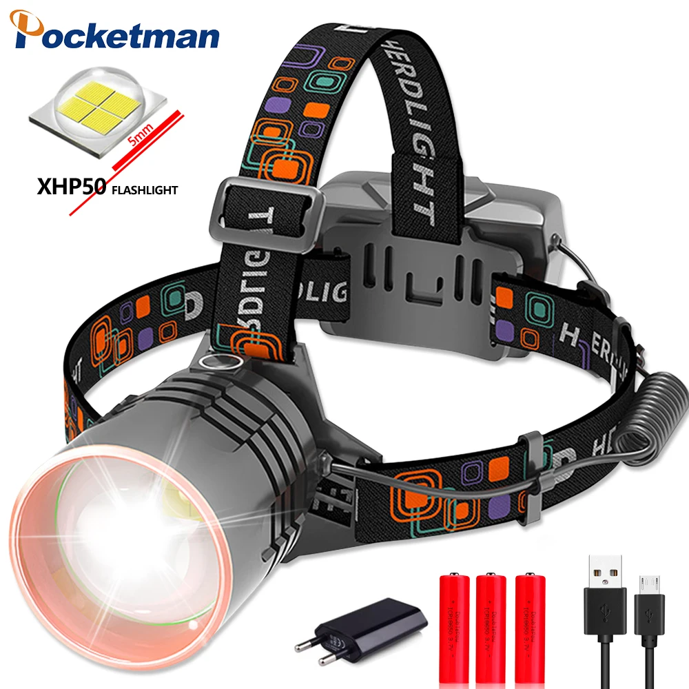 Суперъяркий светодиодный налобный фонарь с зарядкой от USB, Головной фонарь, Головной фонарь, фонарь для охоты, езды на велосипеде, водонепроницаемый, 3x18650