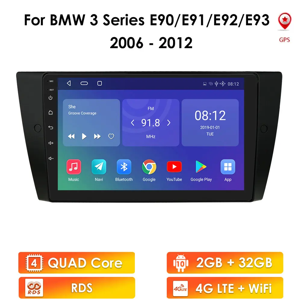 2 Din Android 10 9 дюймов четырехъядерный автомобильный радиоприемник Gps для Bmw 3 серии E90 E91 E92 E93 2006-2012 Navi Стерео мультимедийный плеер USB