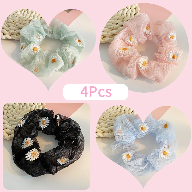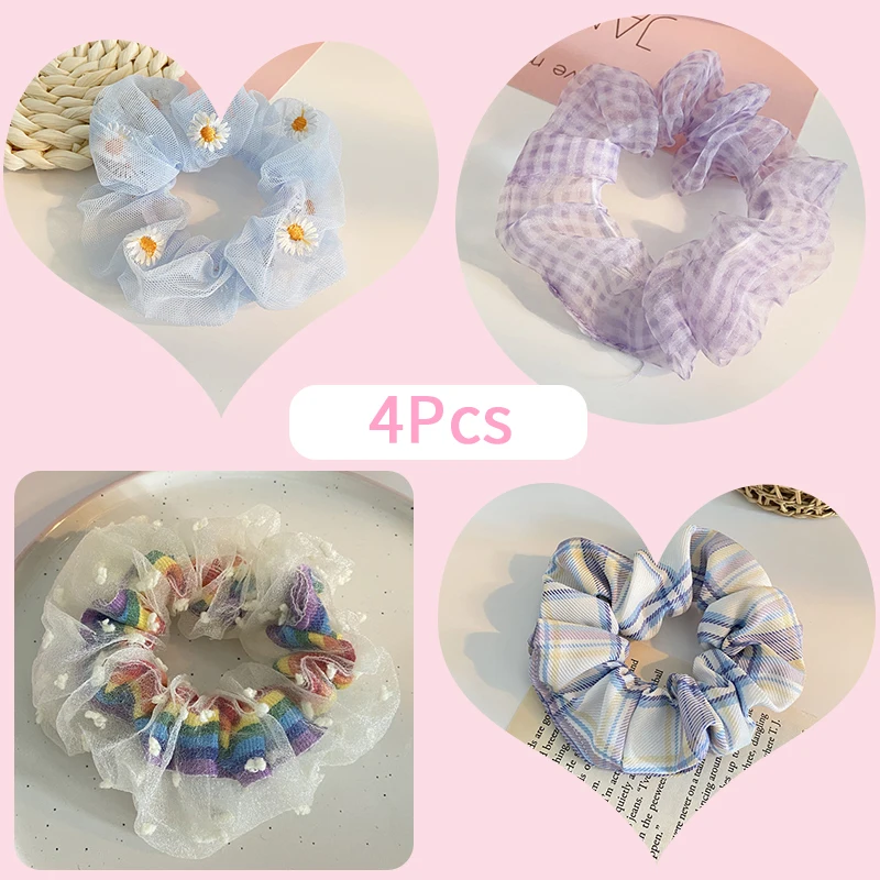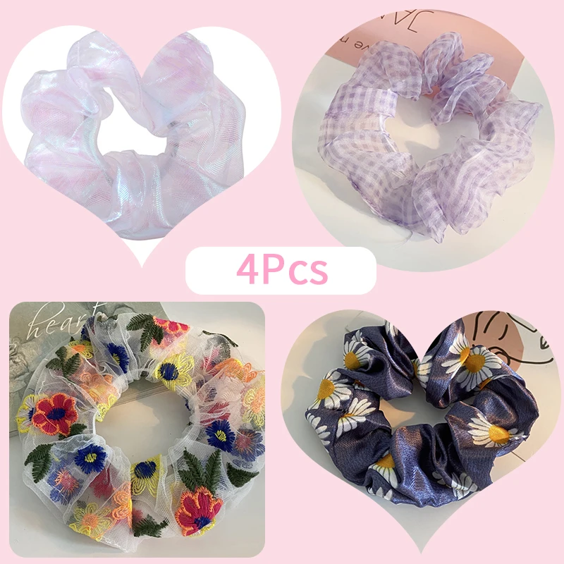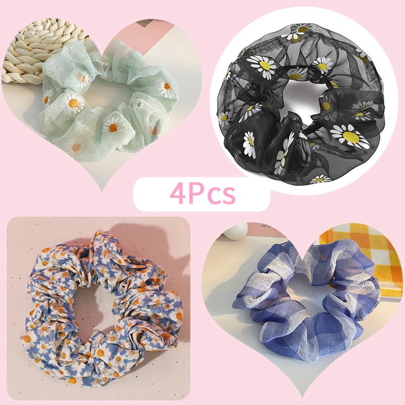 Набор резинок для волос с цветочным принтом для женщин и девочек, 4 шт.компл., эластичные резинки для резинки с завязками волос для хвоста, корейские аксессуары для волос