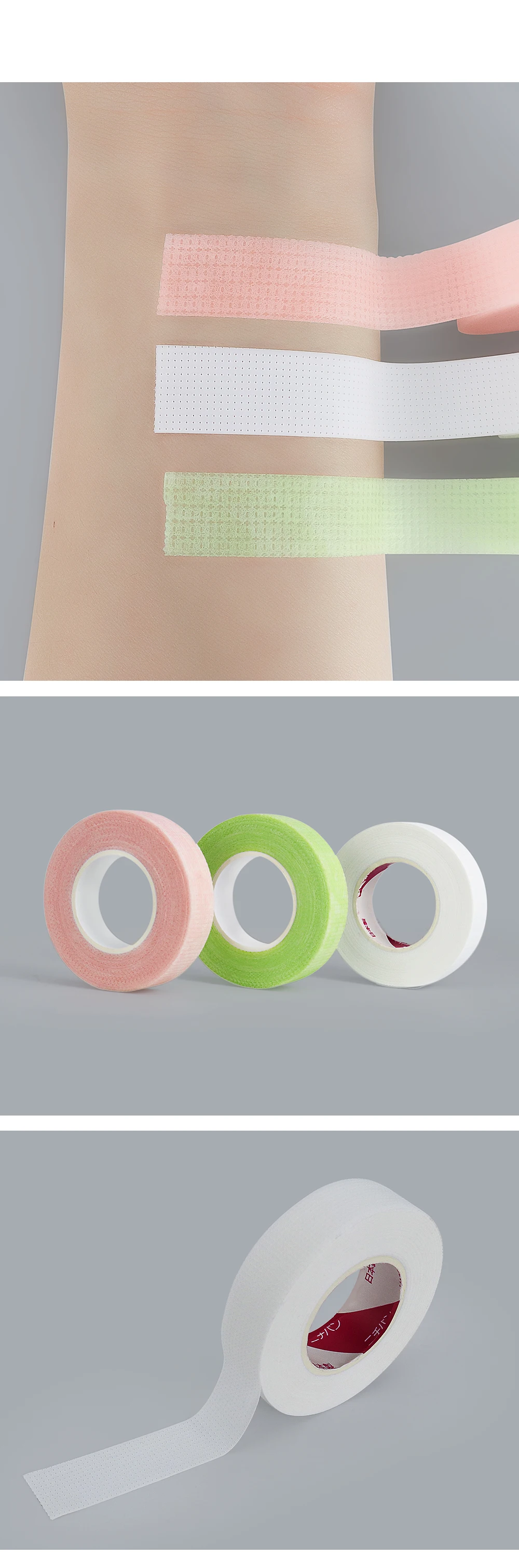 Чрезвычайно мягкий, с хорошей вязкостью, высокая проницаемость, легко рвется.Без боли, удобные и дышащие, мягкие и послушные, разрывающиеся вручную, антиаллергенные.Описание:Категория продукта: накладные ресницыМатериал: ПЭТ, Нетканый.Цвет: зеленый, розовый, белый.Размер: 5,1*1,3 смОбщая длина: 900 см