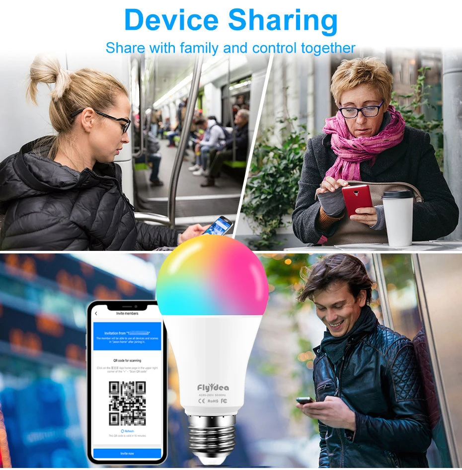 Умная лампа Яндекса Алиса 15 Вт цветной WiFi светильник RGB E27 светодиодная лампа 220 В 110 В Alexa Google домашний помощник Siri Голосовое управление с регулируемой яркостью