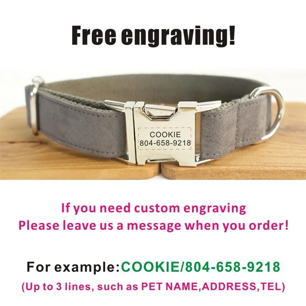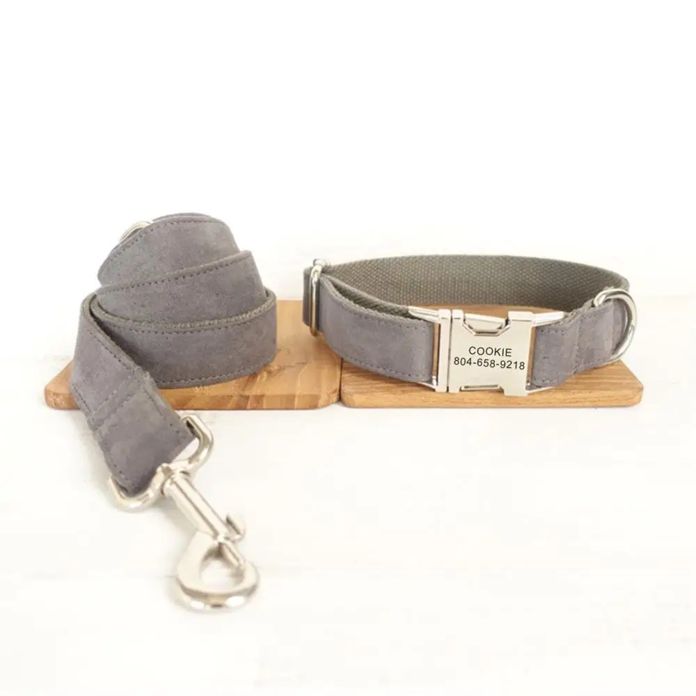 Персонализированный ошейник для питомца индивидуальная именная табличка ID Tag Регулируемый мягкий серый замшевый ошейники для собак и кошек поводок