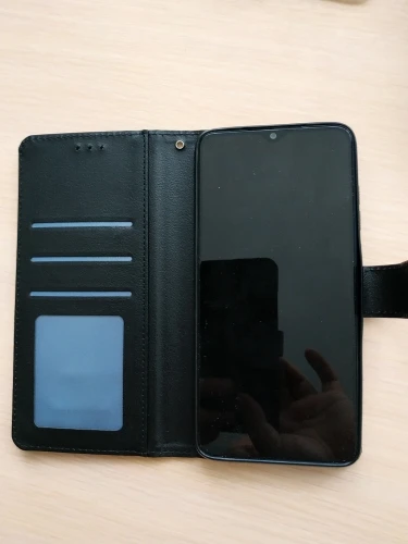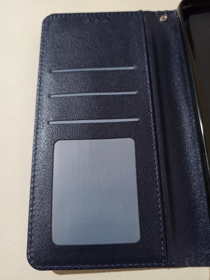 Качественный красивый чехол, кнопки нажимаются без проблем, к телефону прилегает очень плотно. Магнит на застёжке не очень мощный, крышка немного елозит, но видимо это сделано для удобства ношения карт во внутренних кармашках. В комплекте ремешок.