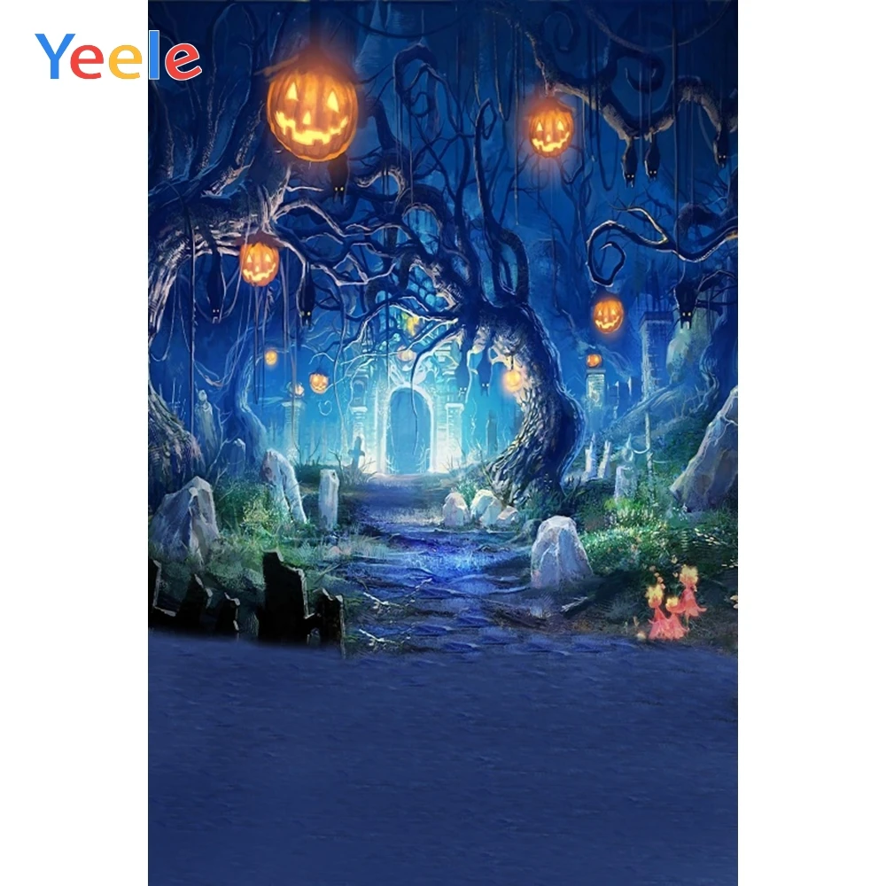Фон для фотосъемки Хэллоуин лес надгробие Тыква фонарь ветка дерева
