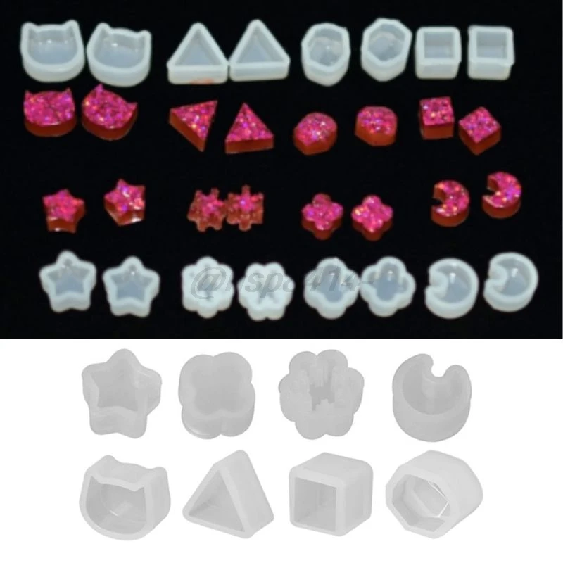 8 пар, силиконовые формы для уф смолы, форма для самостоятельного изготовления кристаллов и эпоксидной смолы, маленькие серьги-гвоздики, форма для эпоксидной смолы