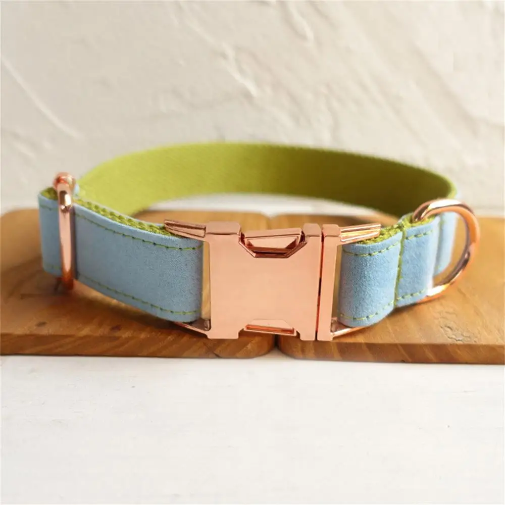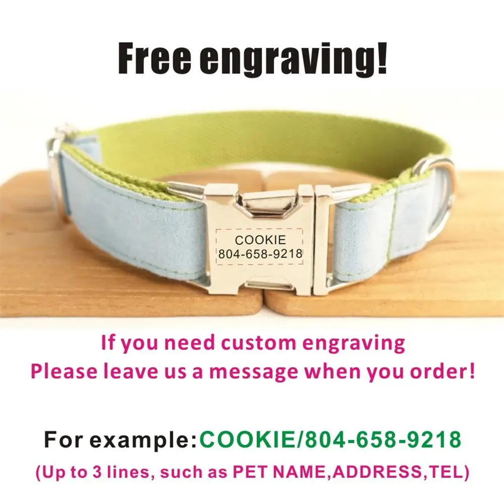 Индивидуальная ошейник для домашних животных индивидуальная именная табличка с идентификатором Регулируемая мягкая зеленая синяя замшевая ткань ошейники для собак и кошек поводок