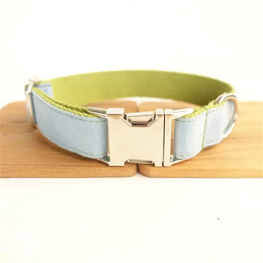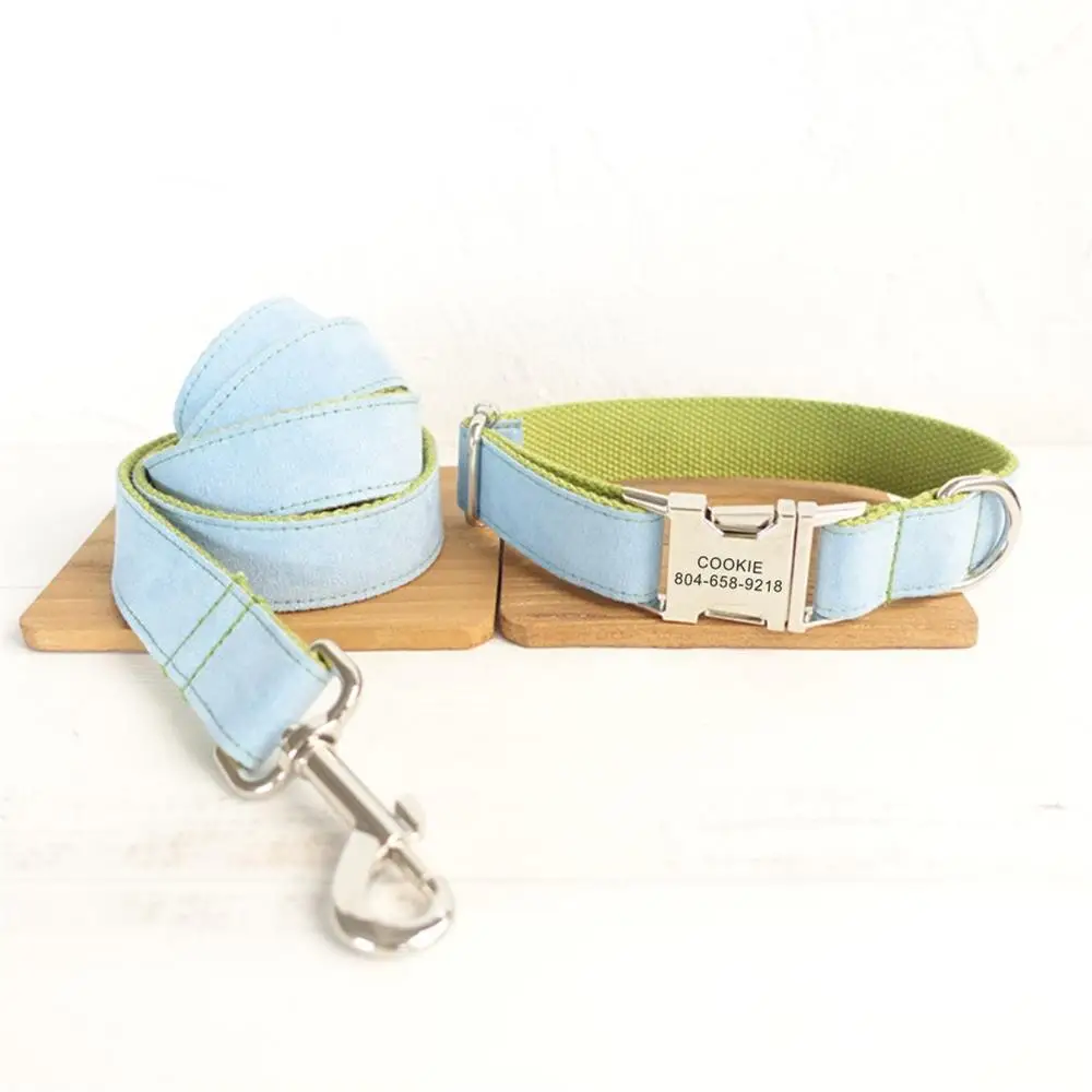 Название продукта: индивидуальный ошейник для домашних животных индивидуальная именная табличка с идентификатором, Регулируемая мягкая зеленая синяя замшевая ткань, ошейники для собак и кошек, поводок