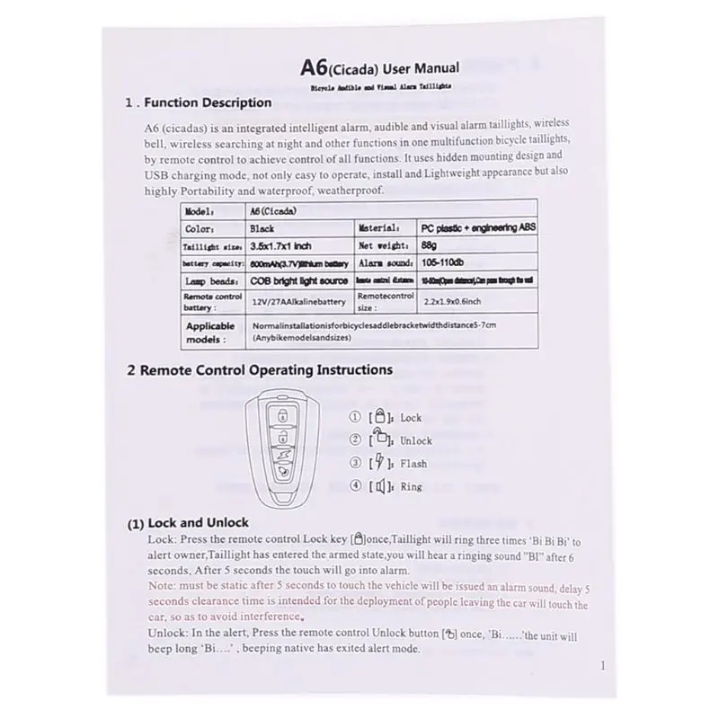 · Велосипедный задний фонарь и Противоугонная сигнализация в одном устройстве, удобный и компактный в использовании;