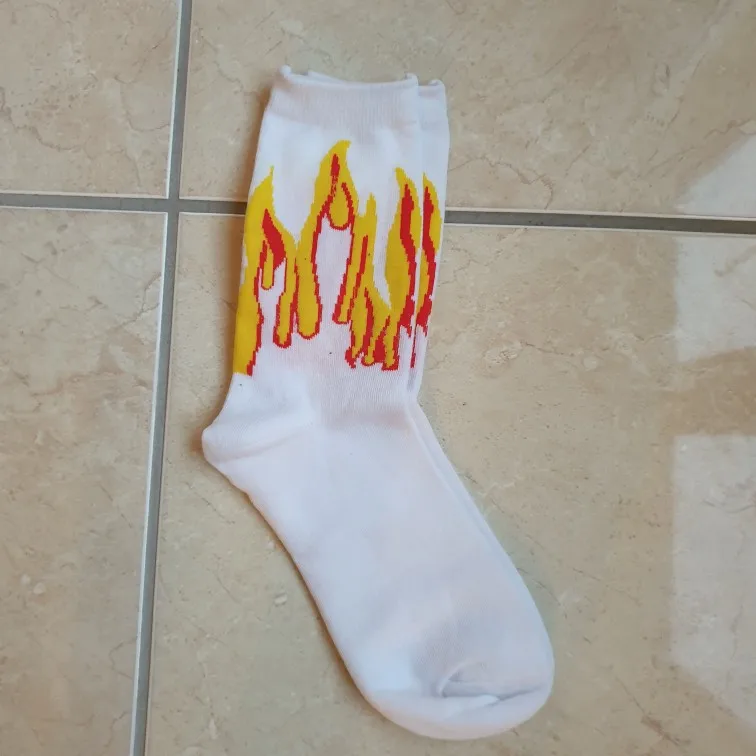 Носки унисекс в стиле хип-хоп, уличные носки для скейтборда, скейтборда, пламени, черного, белого, желтого цвета