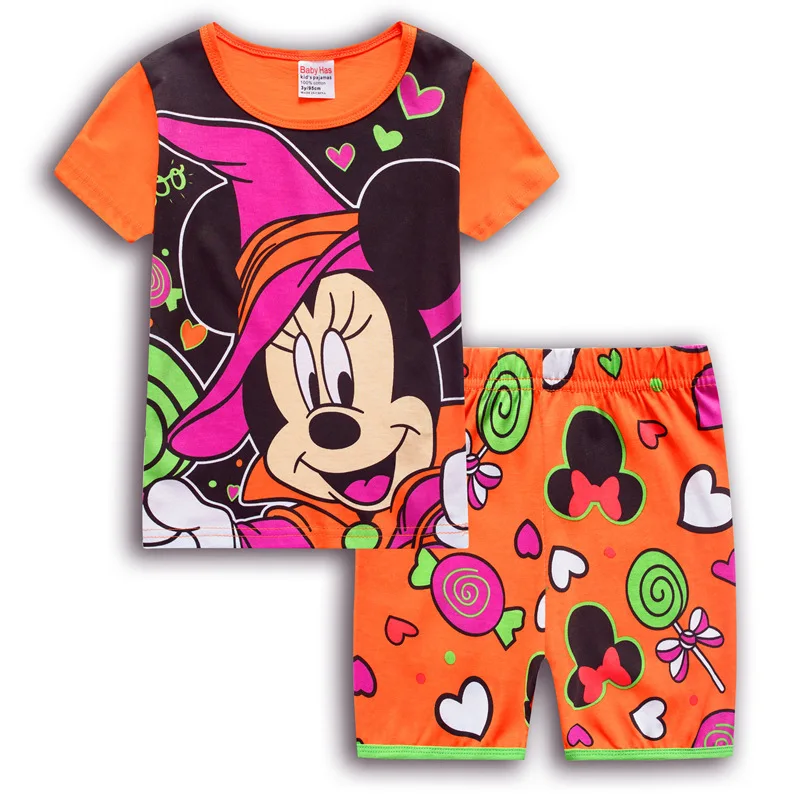 Детские пижамы с рисунком Микки Мауса Пижама для мальчиков и девочек; Новое летнее платье из хлопка; Детская одежда Минни комплект костюм с коротким рукавом, детская одежда для сна