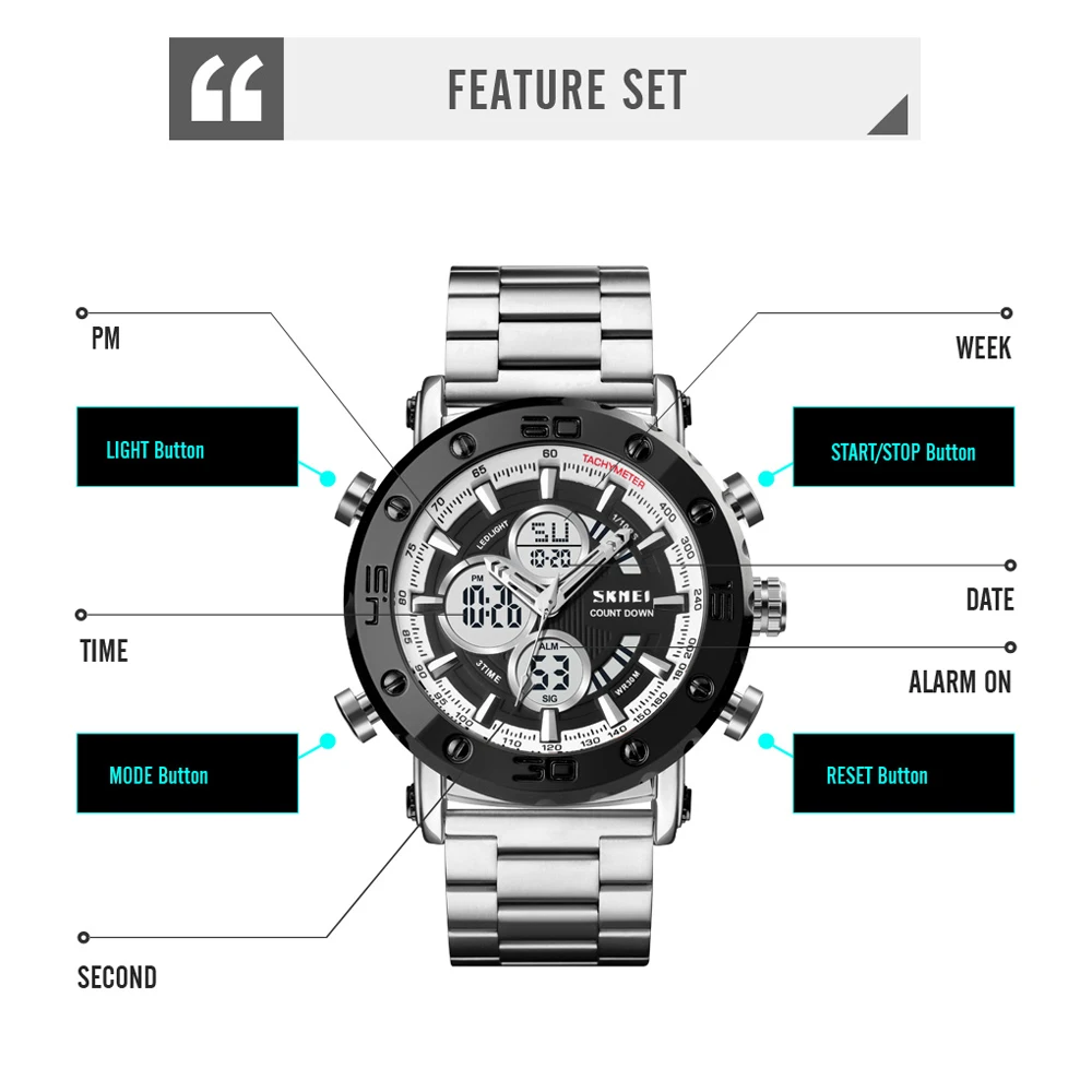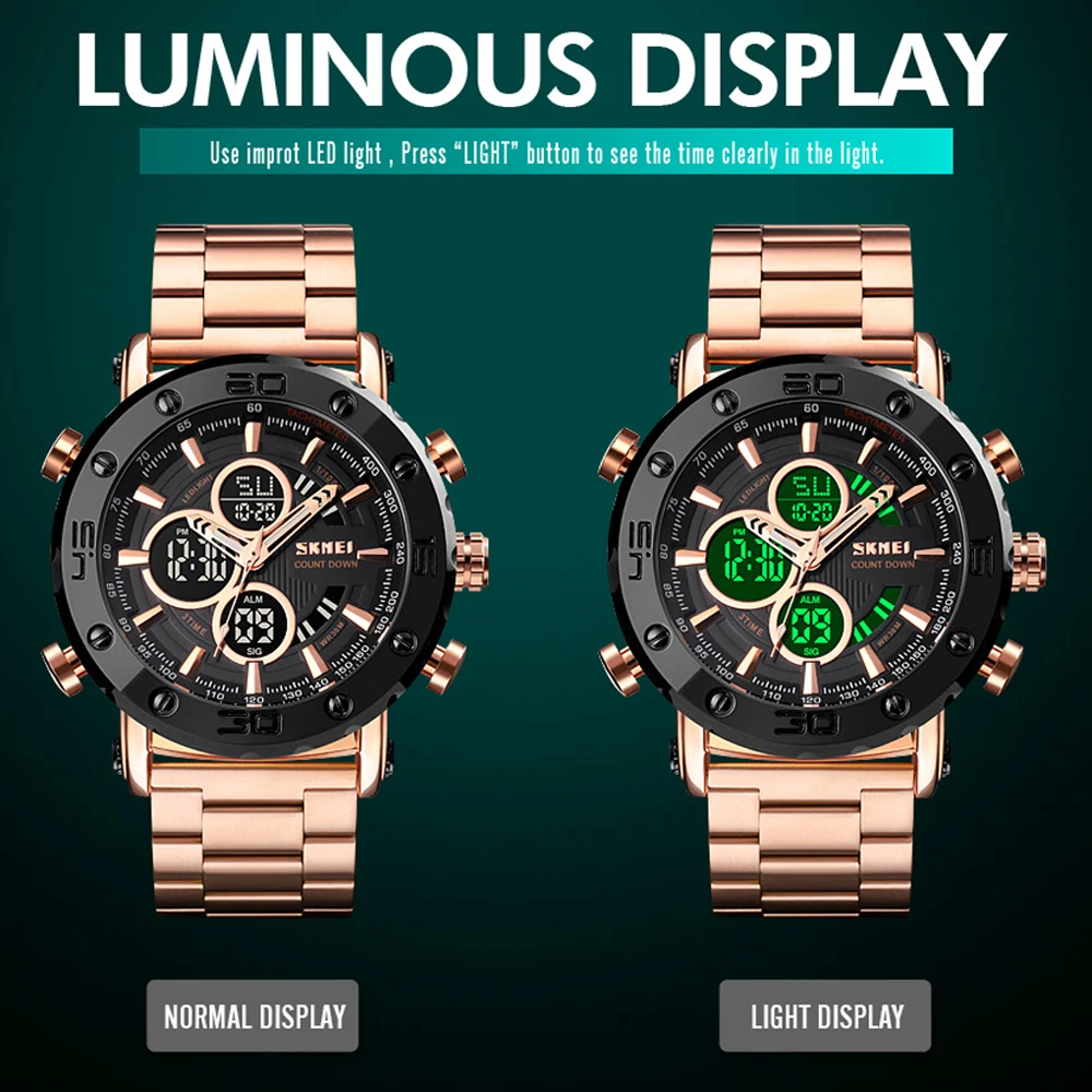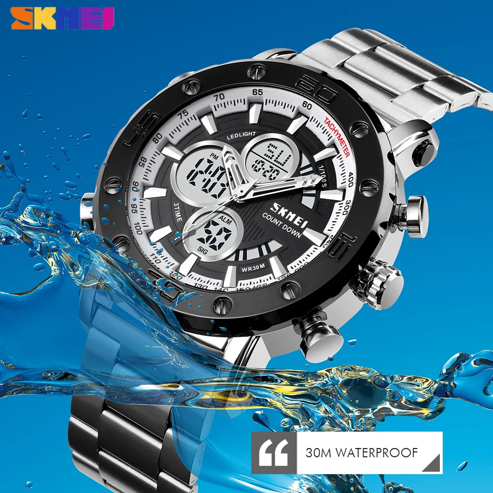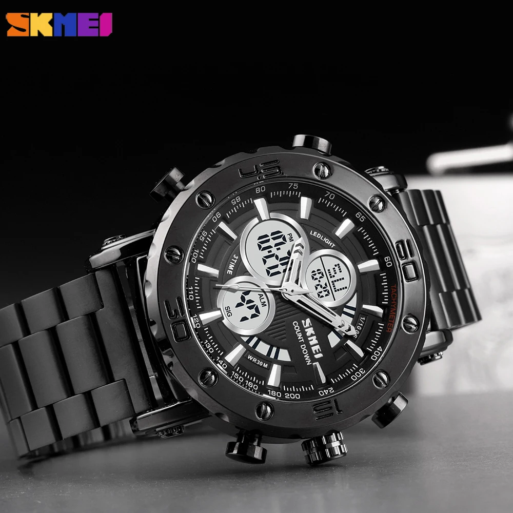 Часы SKMEI Мужские кварцевые, светодиодные, аналоговые, цифровые, спортивные, водонепроницаемые
