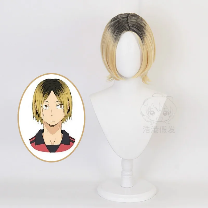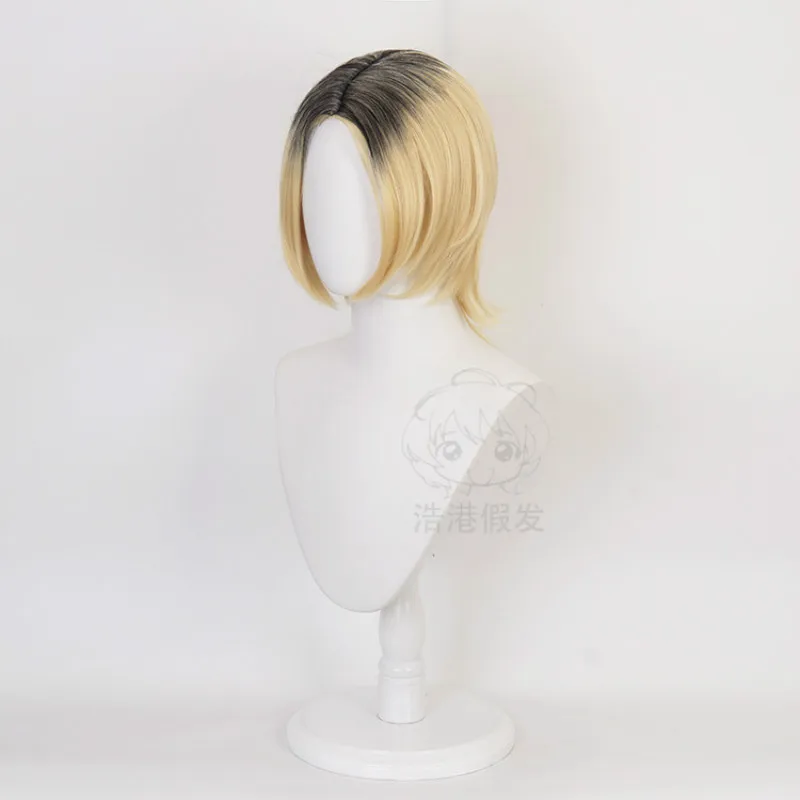 Аниме Haikyuu! Парик для косплея Kenma Kozume, с короткими желтыми волосами для костюма на Хэллоуин, с шапочкой