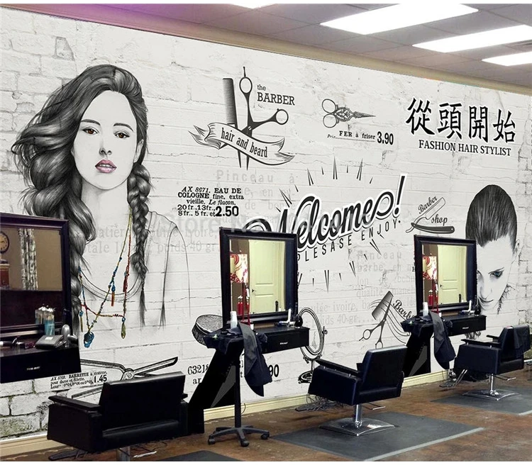 3D обои на заказ, Ретро стиль, цементная стенка, салон красоты, Парикмахерская, фон, Настенный декор, ручная роспись, граффити, настенная живопись, фотообои