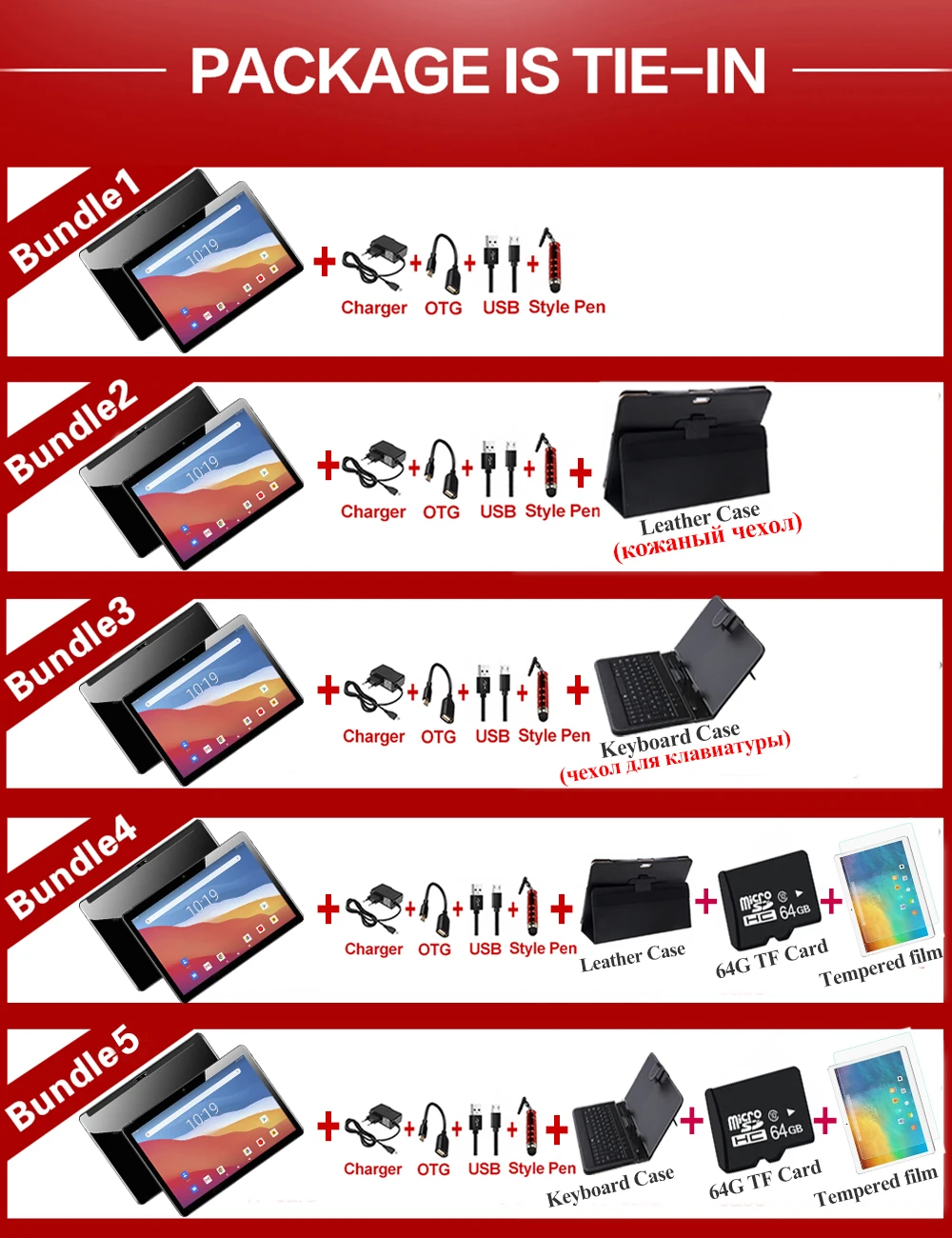 Комплект 4 = «32G TAB Add Leather case Plus» = планшетный ПК + usb кабель + otg кабель + руководство пользователя + подарки +Карта TF 64G+Кожаный чехол+Закаленная пленка
