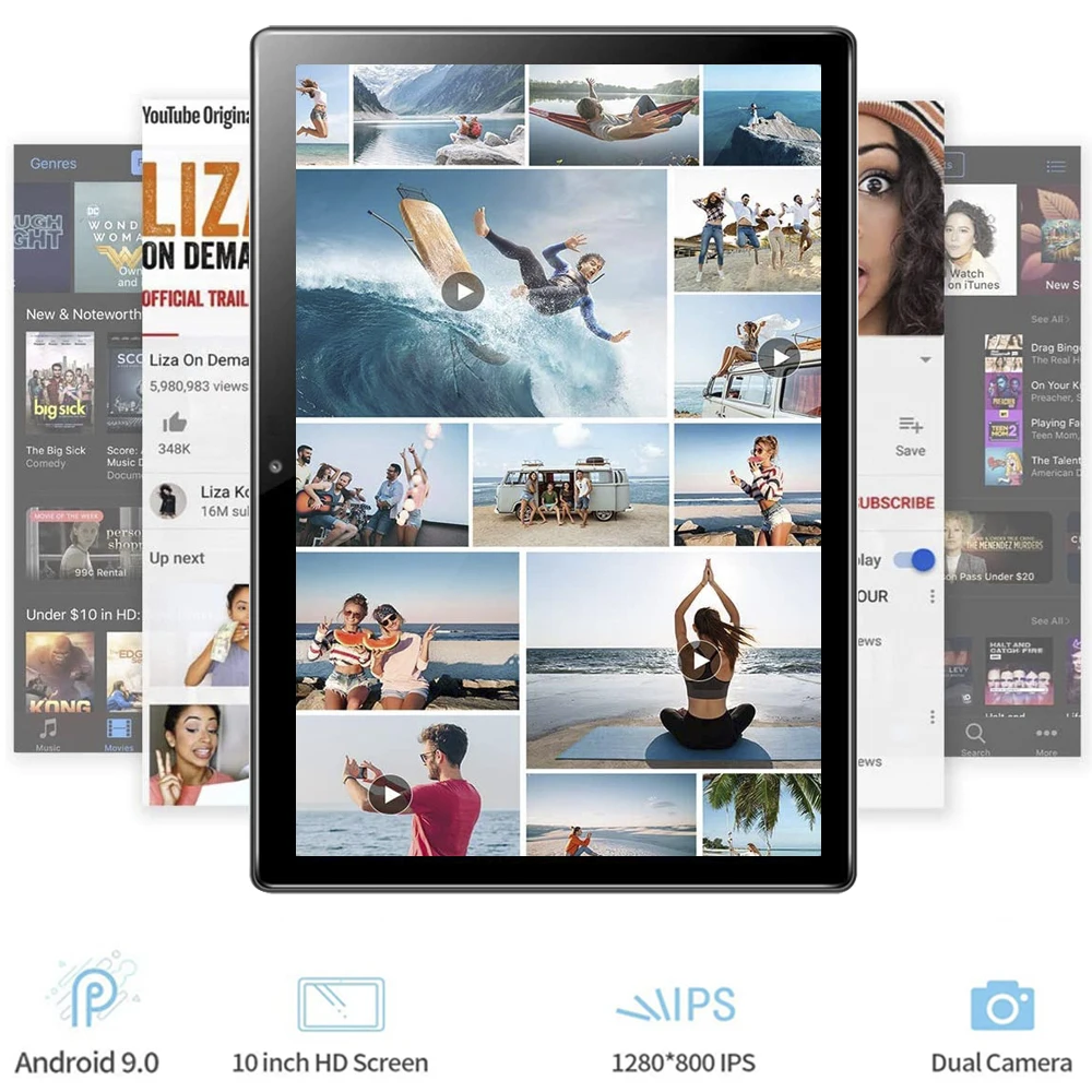 2021 Новый Google Play 2.5D стекло 1280*800 IPS HD разрешение экрана 10 дюймовAndroid 9,0 PieOS IPS 3G две SIM-картыНадежная микросхема для задней камеры 5,0 МПRAM 32GB ROMТелефонные звонки планшеты ПК Wifi/GPS Поддержка YouTube + подарки