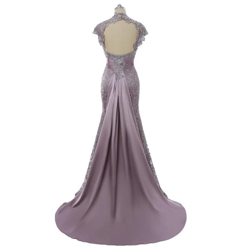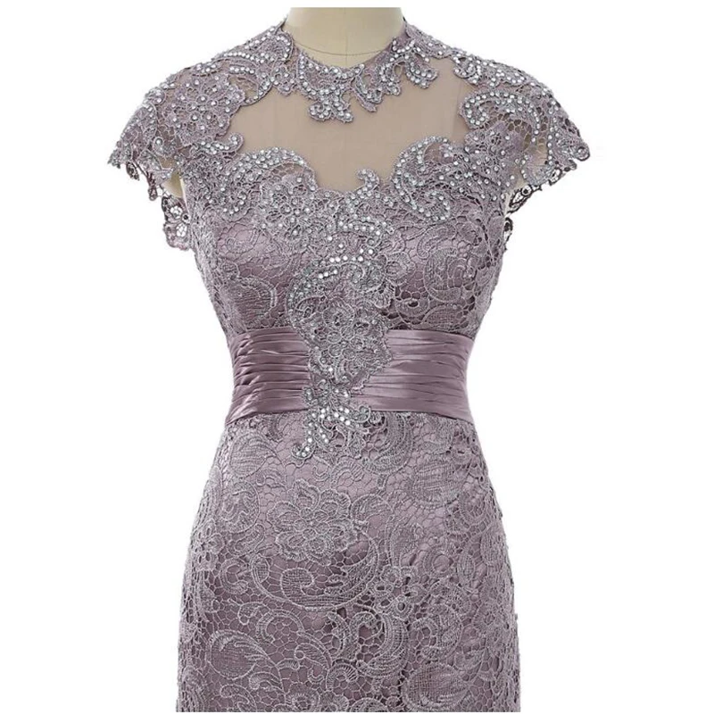 Великолепные трапециевидные кружевные платья лавандового цвета с высоким воротником и рукавами-крылышками для мамы и невесты; Платья для свадебной вечеринки