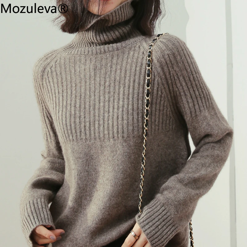 Женский Теплый вязаный пуловер с длинным рукавом, с высоким воротом