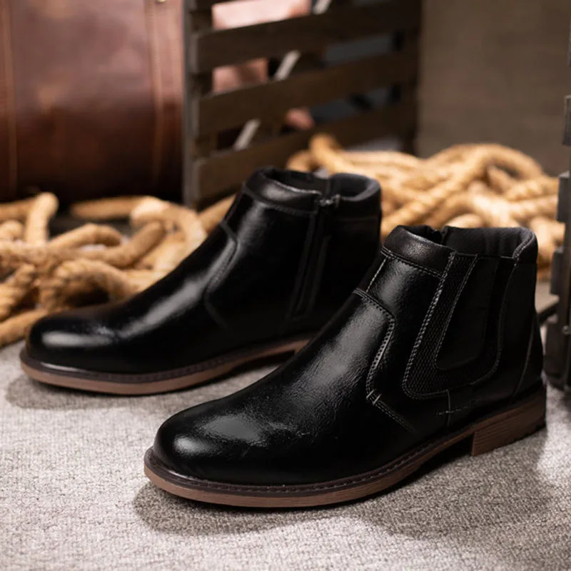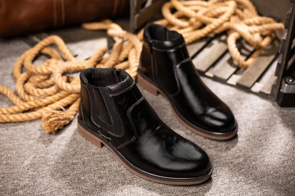 Fashion Leather Boots MenCasual Motorcycle Ankle Male Boots