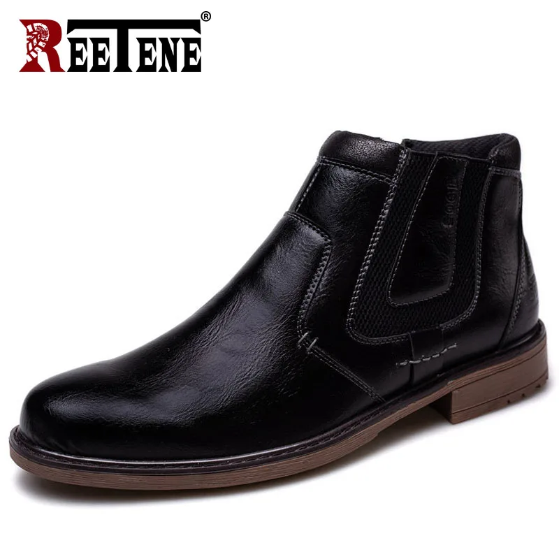 Ботинки REETENE мужские кожаные, повседневные мотоциклетные ботильоны, базовые, винтажный стиль, Осенняя обувь 39-48