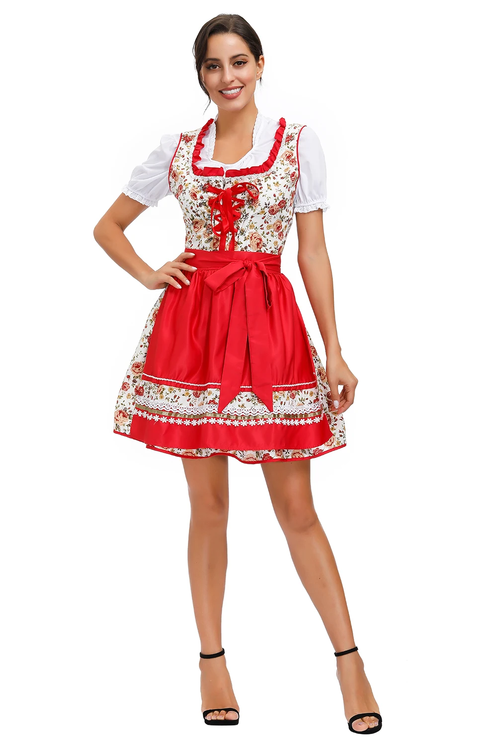 Красное Клетчатое Платье Dirndl, традиционное немецкое баварское пи...