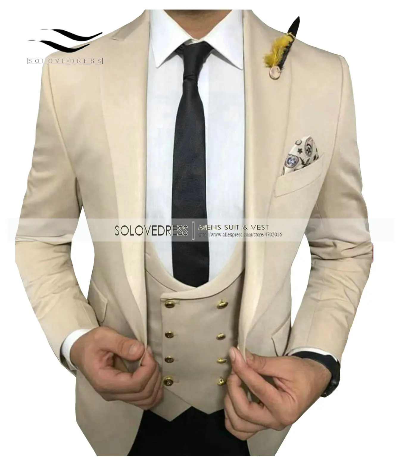 Мужские костюмы из трех предметов, бежевые однотонные костюмы в дел...
