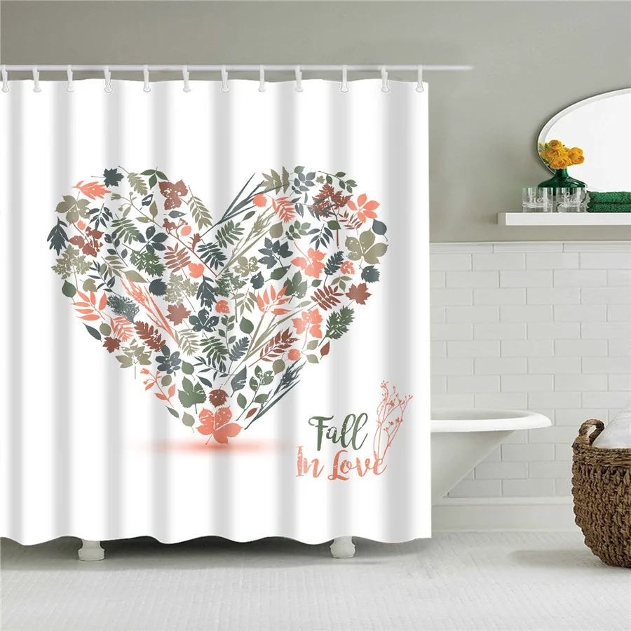 Декоративная шторка для душа из ткани с изображением листьев и цвет...