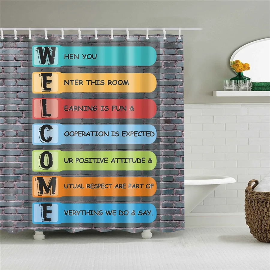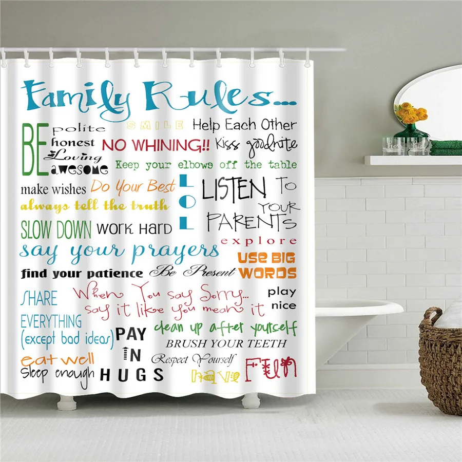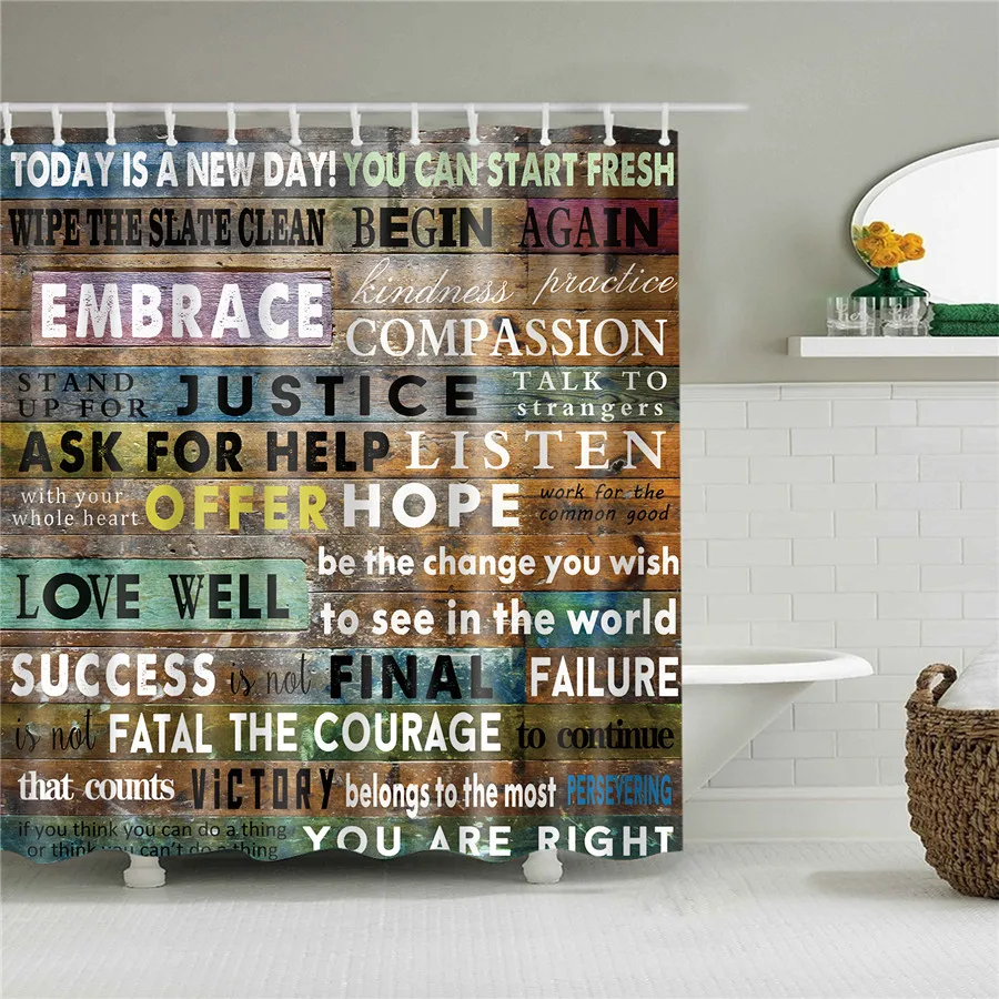 Занавеска для душа, с деревянными буквами, водостойкая, с крючками