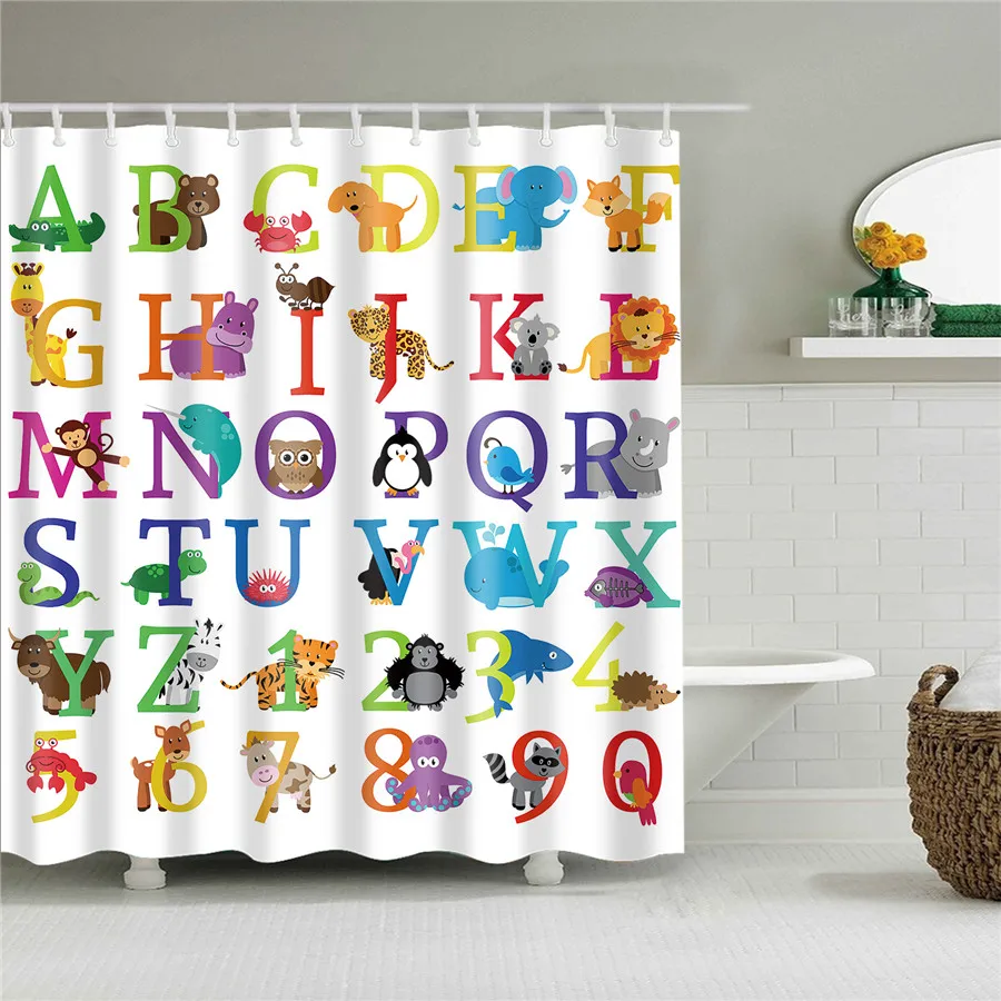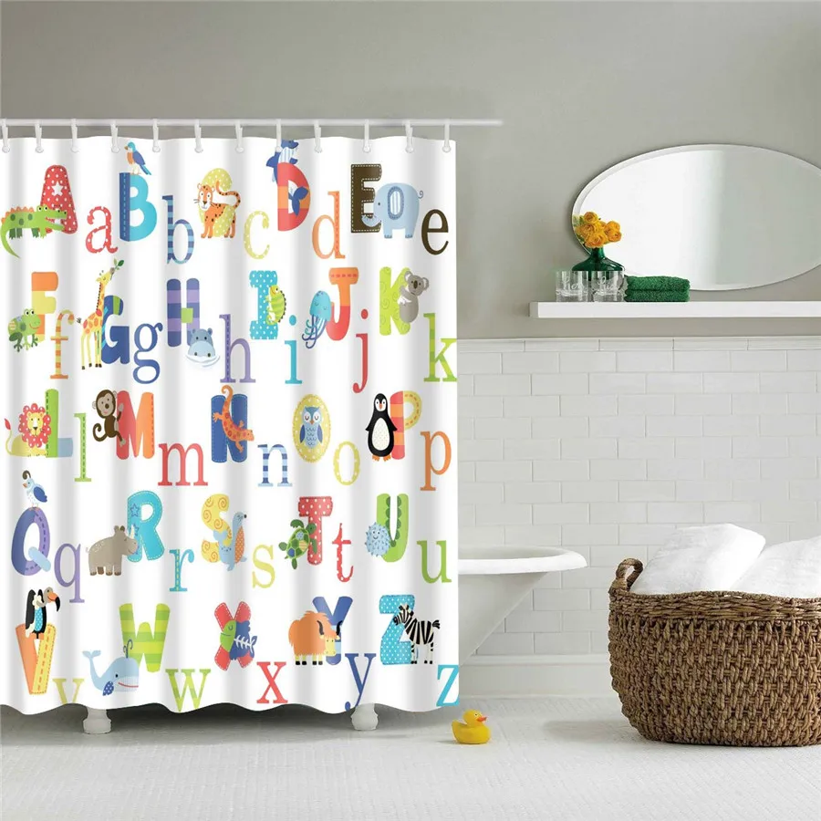 Занавеска для душа из полиэстера, водонепроницаемая, с милыми живот...