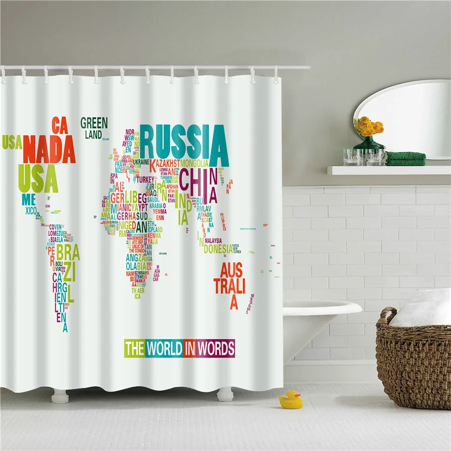 Декоративная занавеска для душа с изображением карты мира, животных...